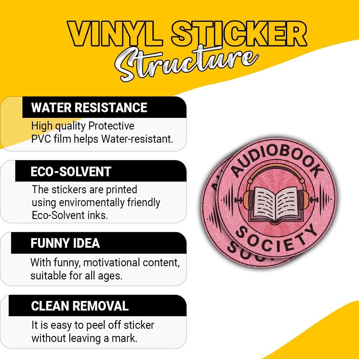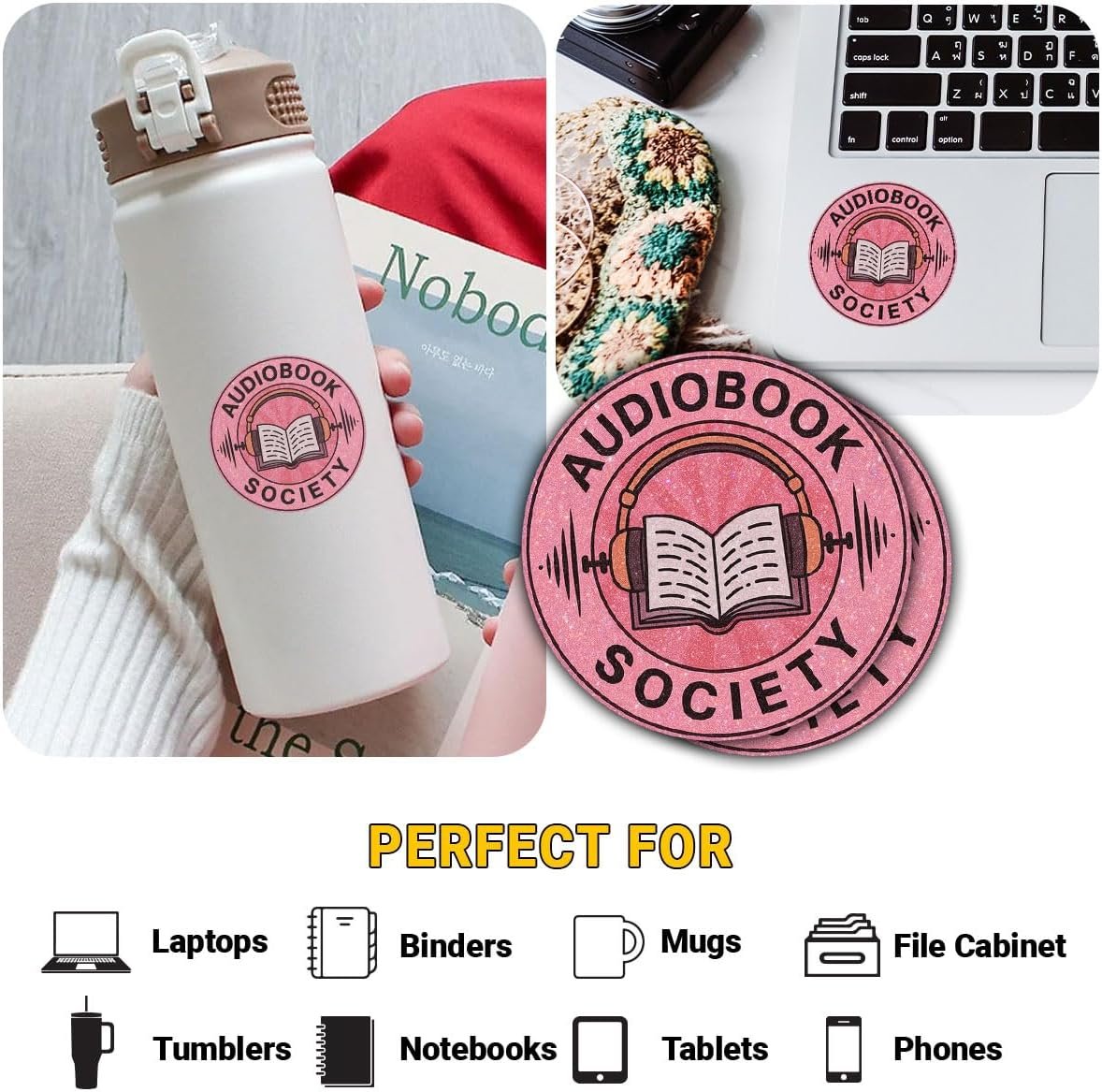 3 Pcs Audiobook Society Sticker – Funny Bookworm Headphones Quote Vinyl Decal Waterproof for Laptop, Water Bottle, Kindle, Notebook – Gift for Audiobook Lovers, Busy Readers – 3 Inch. Search us: audiobook society sticker; audiobook lover sticker; bookworm with headphones sticker; i read with my ears sticker; podcast listener sticker; funny audiobook quote sticker; audiobook addict decal; book club via headphones sticker; audiobook lifestyle sticker; reading through audio sticker; digital book nerd sticker; listen to books sticker; audio reading club sticker; audio learner sticker; audiobook fan sticker; bookish audio sticker; multitask reader sticker; headphones on reading sticker