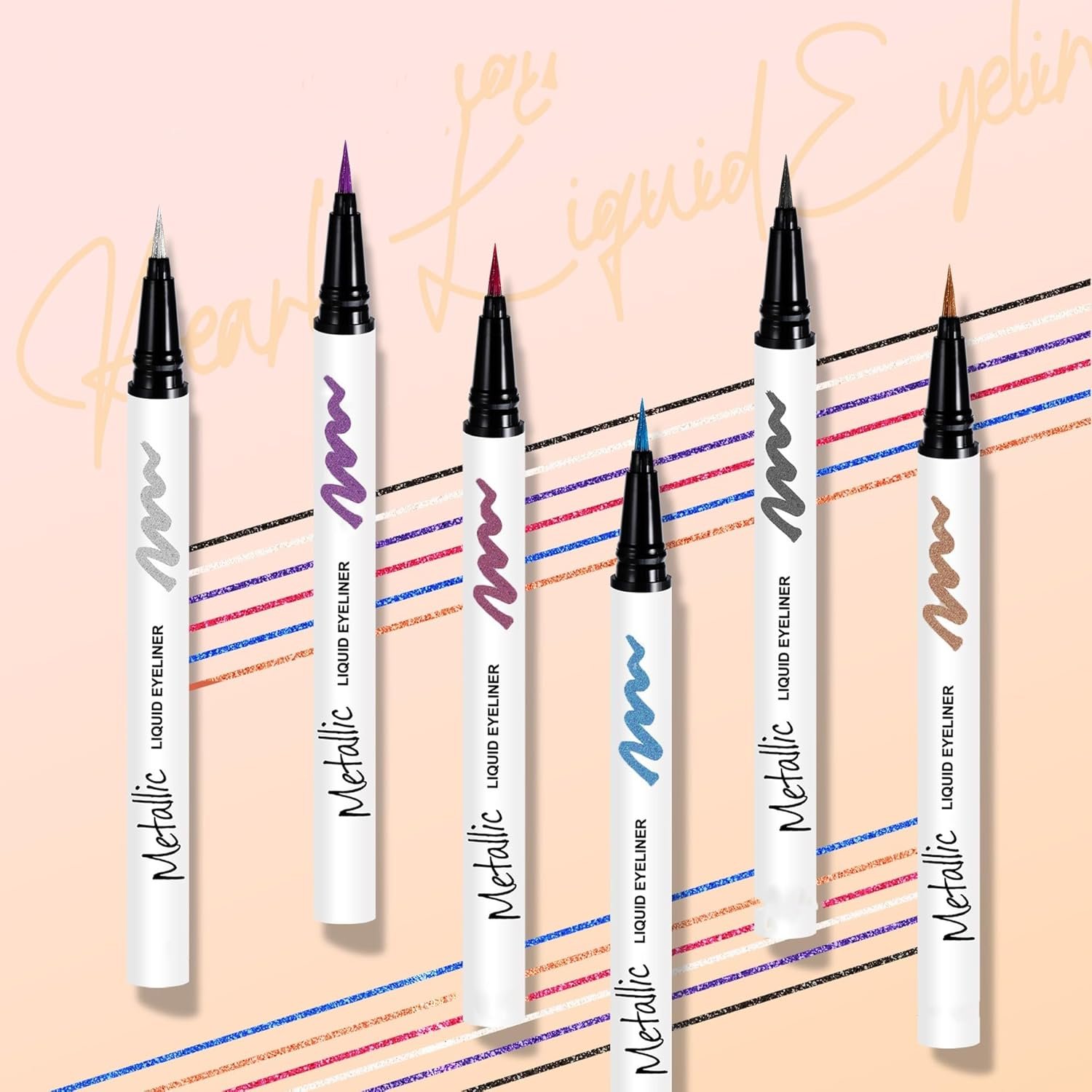 ✿【Vivid Metallic Colors】MAEPEOR glitter eyeliner fits in any kinds of skin with 6 pop colors: white, black, blue, purple, red and brown(as shown in the picture). It’s great for artistic make up or for parties or costume events, perfect for a halo eye and daily wear.
