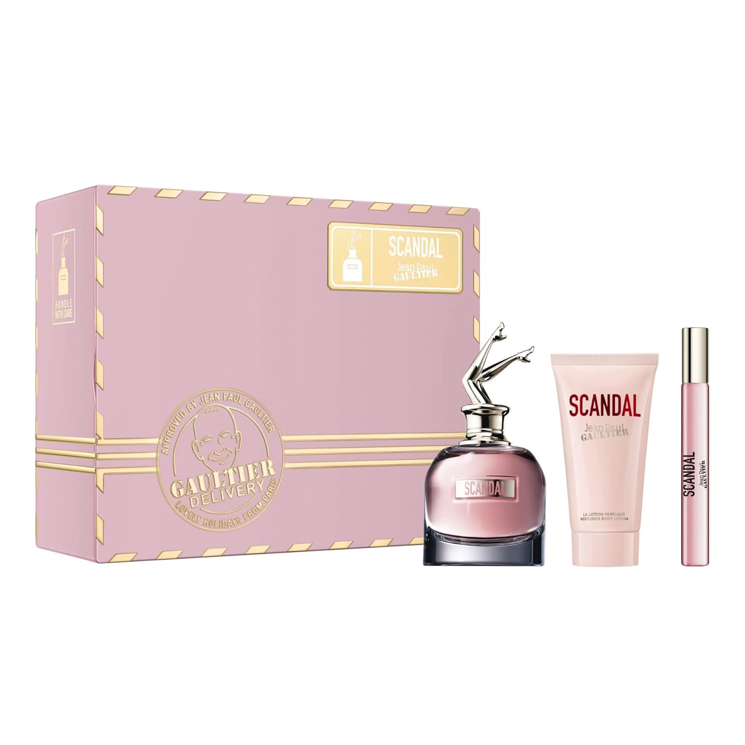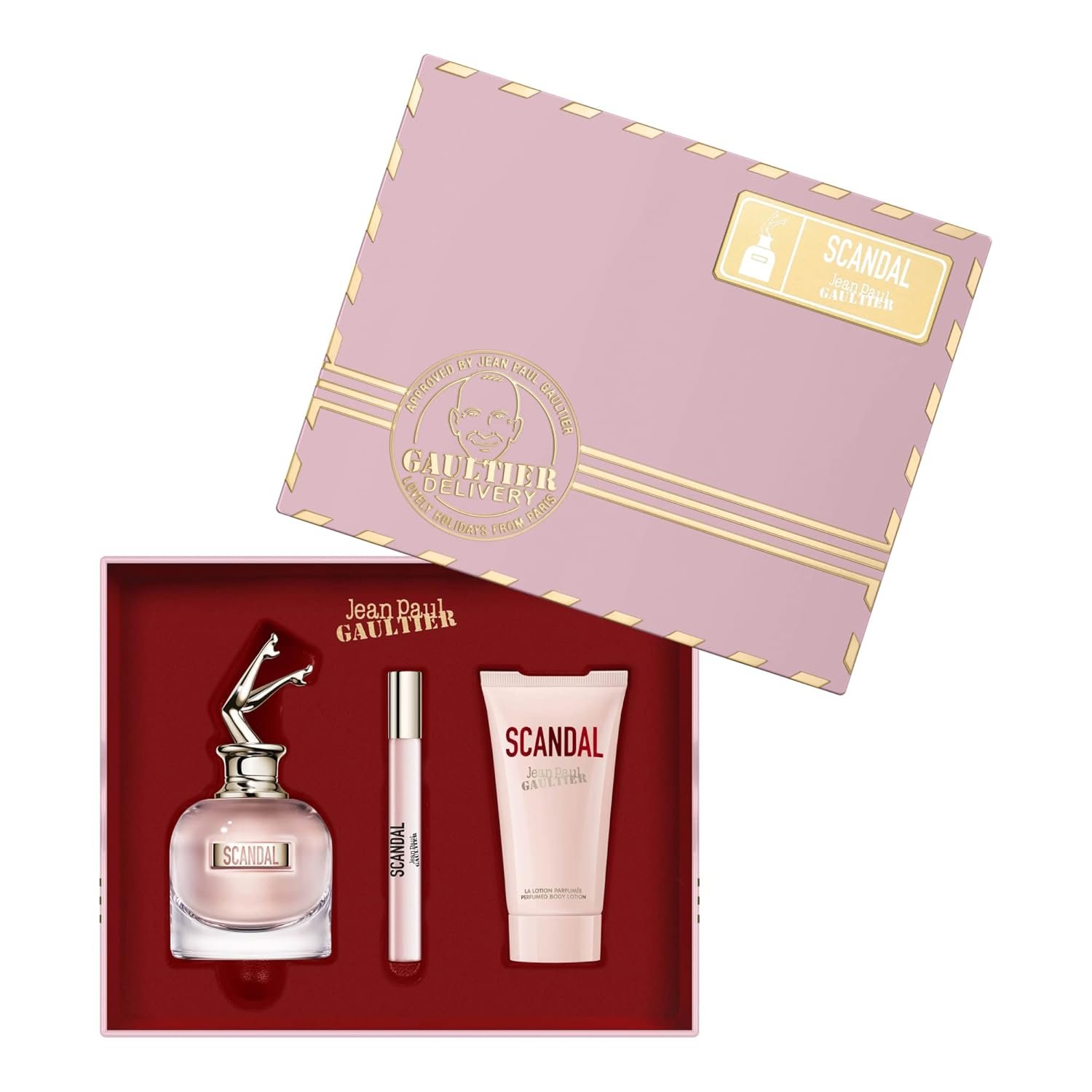 Fragrance Family: Gourmand Chypre Top Notes: Gardenia. Heart Notes: Honey. Base Notes: Patchouli. The perfect gift for her, Jean Paul Gaultier’s Scandal embodies elegance and femininity. This gift set unites a full-size and travel-sized EDP with a scented body lotion, enveloping skin in a sensual and alluring fragrance. Set Contents: Scandal Eau de Parfum 80ml Designed to cause a stir, this addictive fragrance combines notes of honey, elegant gardenia and sensual patchouli. Housed in a coveted glass bottle, accessorised with a scandalous pair of legs. Scandal Body Lotion 75ml This scented body lotion echoes the fragrance of the Scandal Eau de Parfum, wrapping skin in a long-lasting scent trail of honey, gardenia and patchouli. Scandal Mega Spritz 10ml A travel-sized vial of the EDP, perfect for keeping in your handbag for top-ups.