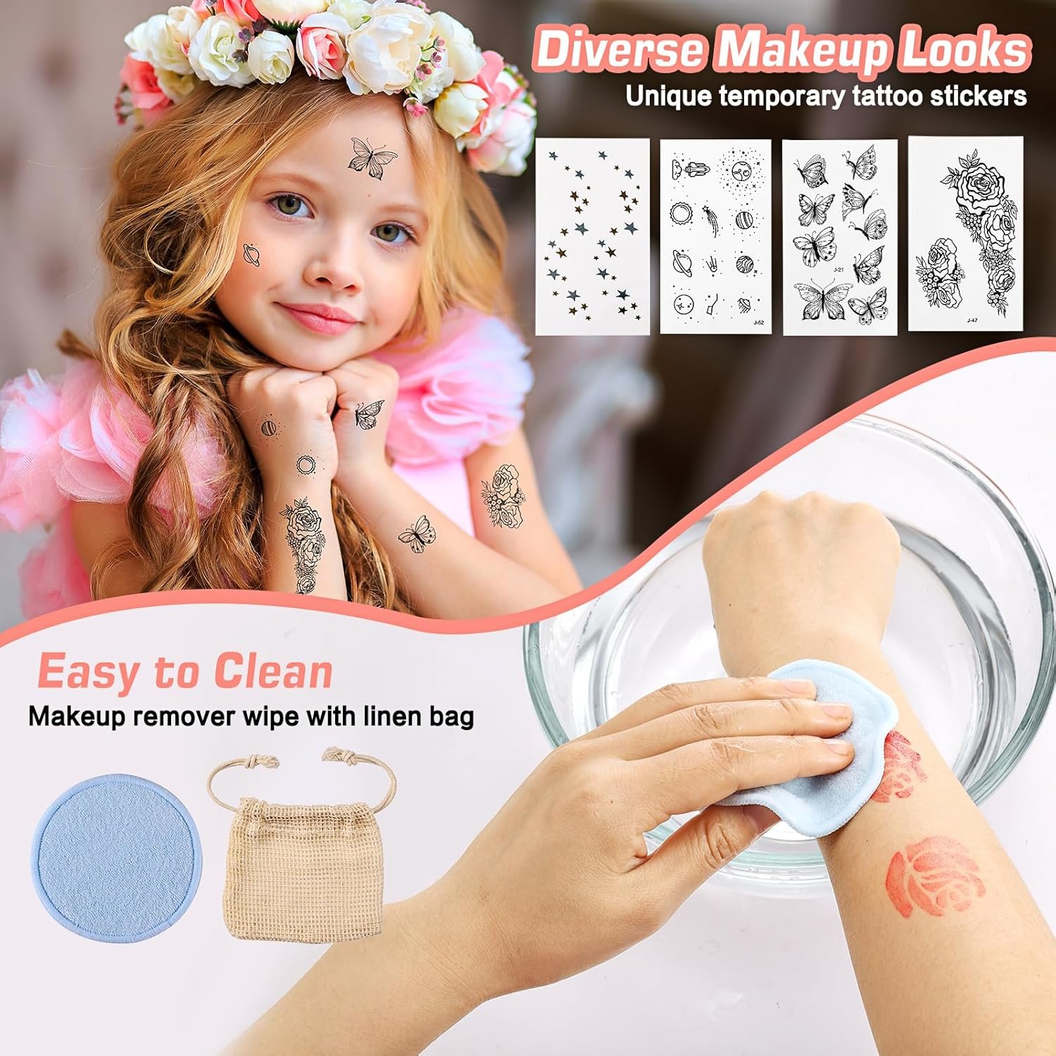 Suitable for All Skin Types: Our makeup kits cater to almost every age and are completely free from phthalates, parabens, synthetic fragrances, and animal testing, ensuring they are gentle on all skin types. Additionally, a reusable wipe is included for easy makeup removal.
