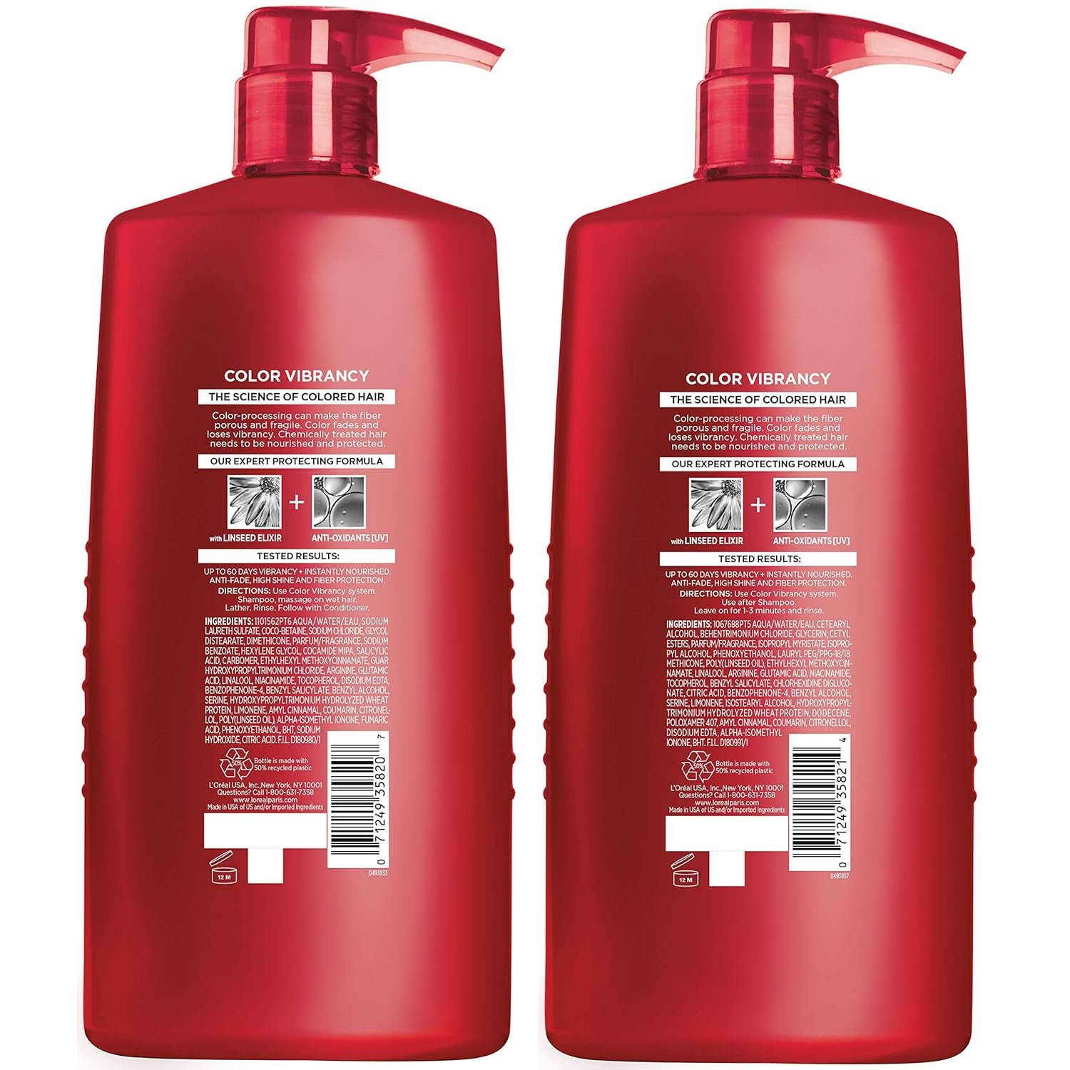 L’Oreal Paris Color Vibrancy Nourishing Shampoo and Conditioner hydrates, conditions, cleanses and keeps color treated hair shiny and beyond brilliant. Anti-Oxidant [UV] system protects hair color and shields color from fading. For best results and amazing shine, use L’Oreal Color Vibrancy shampoo and conditioner together.