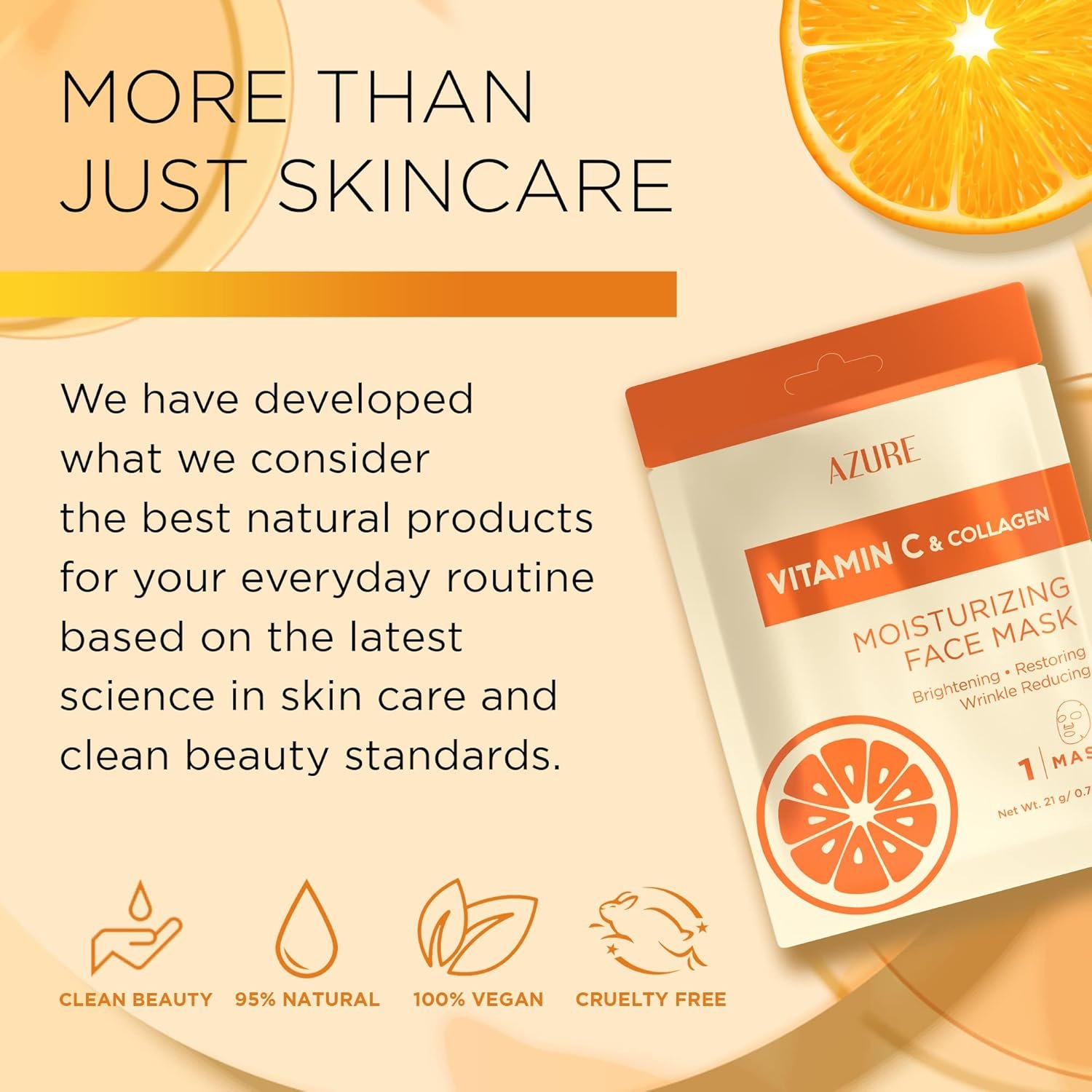 BRIGHTENS AND TONES SKIN: Our Vitamin C and Collagen moisturizing face mask is specially formulated to improve uneven skin tone and firmness, restoring the vitality of your skin. Our sheet masks help diminish the appearance of fine lines and wrinkles for more youthful, revitalized, and radiant skin.
