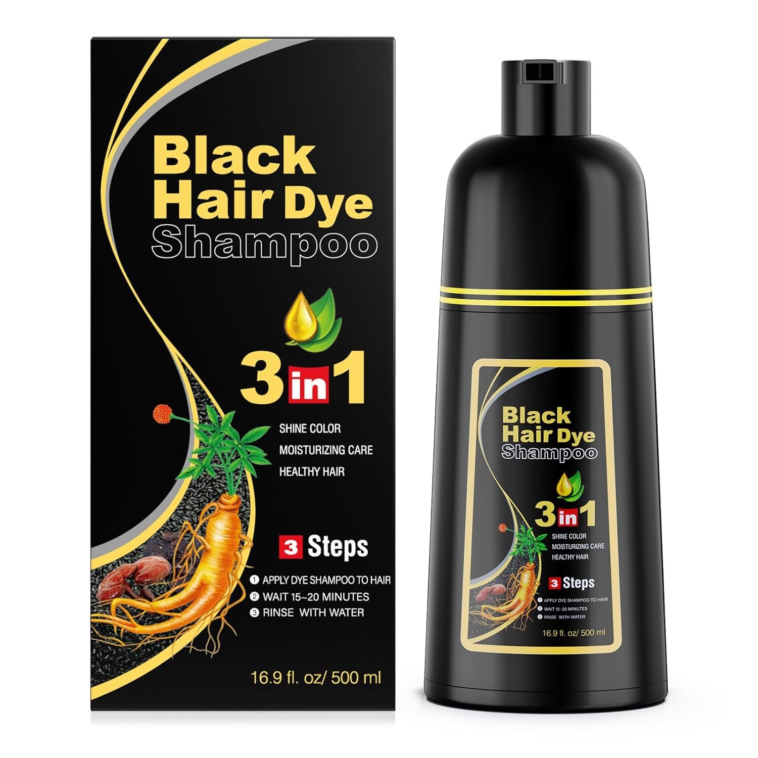 BLACK HAIR DYE SHAMPOO 3 IN 1 : Our Hair Dye is different from traditional hair dye, No parabens & no harsh chemicals. Dark Brown/Black hair dye, can be used not only as a color hair dye but also as a hair shampoo and hair conditioner. Very convenient to make hair dye black at home.