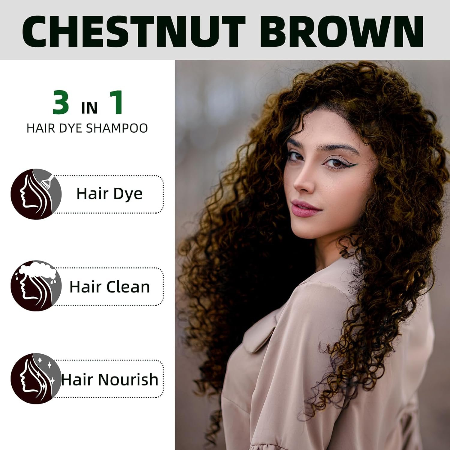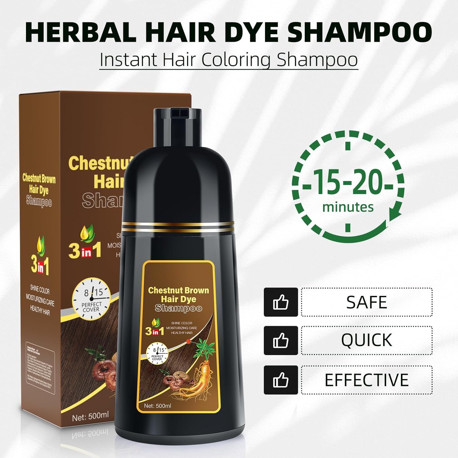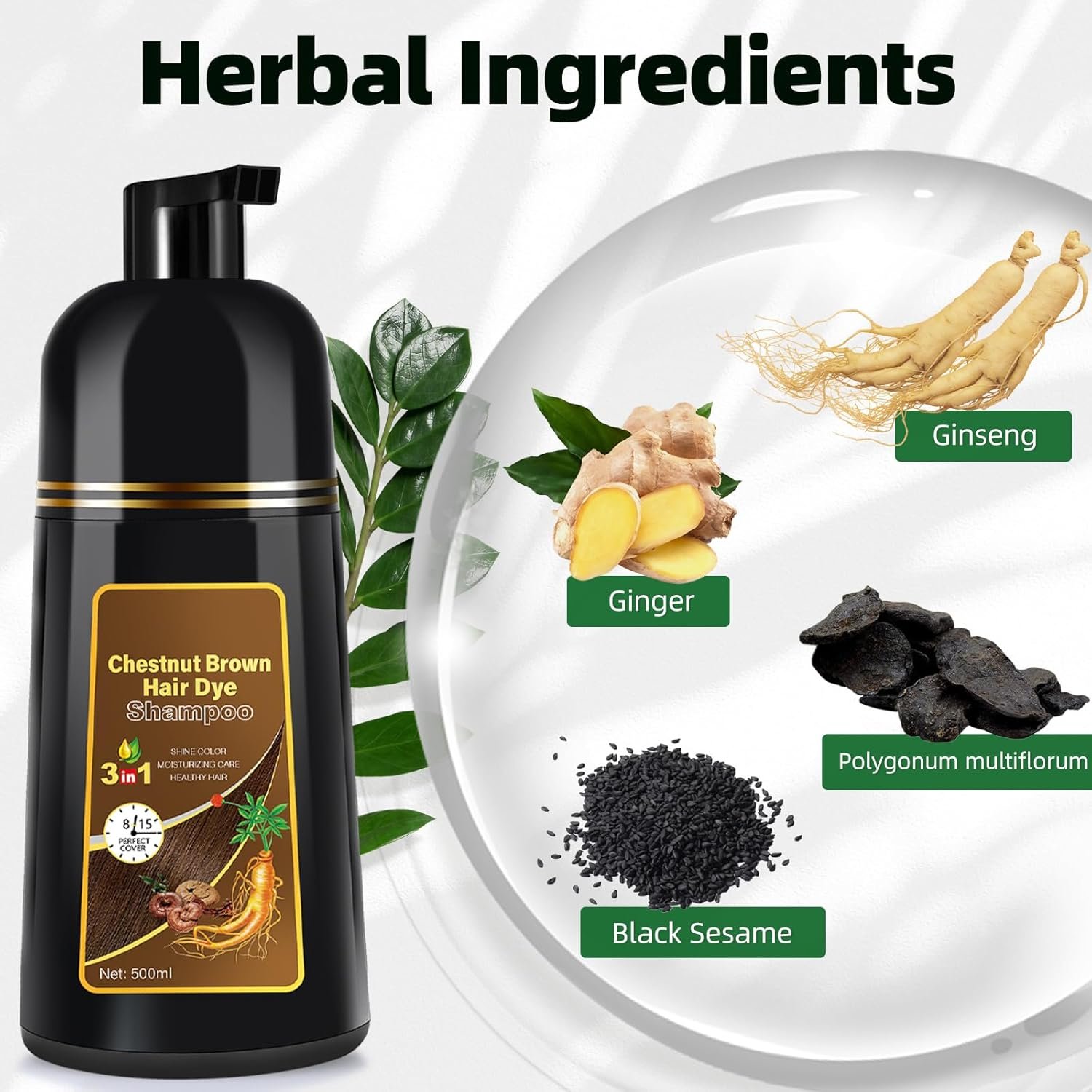 Formula Upgrade for Peace of Mind: Experience our 3 in 1 chestnut brown hair dye shampoo with an upgraded formula—now free of preservatives, sulfates. Rest assured as you explore the full product formula table for complete transparency and peace of mind.