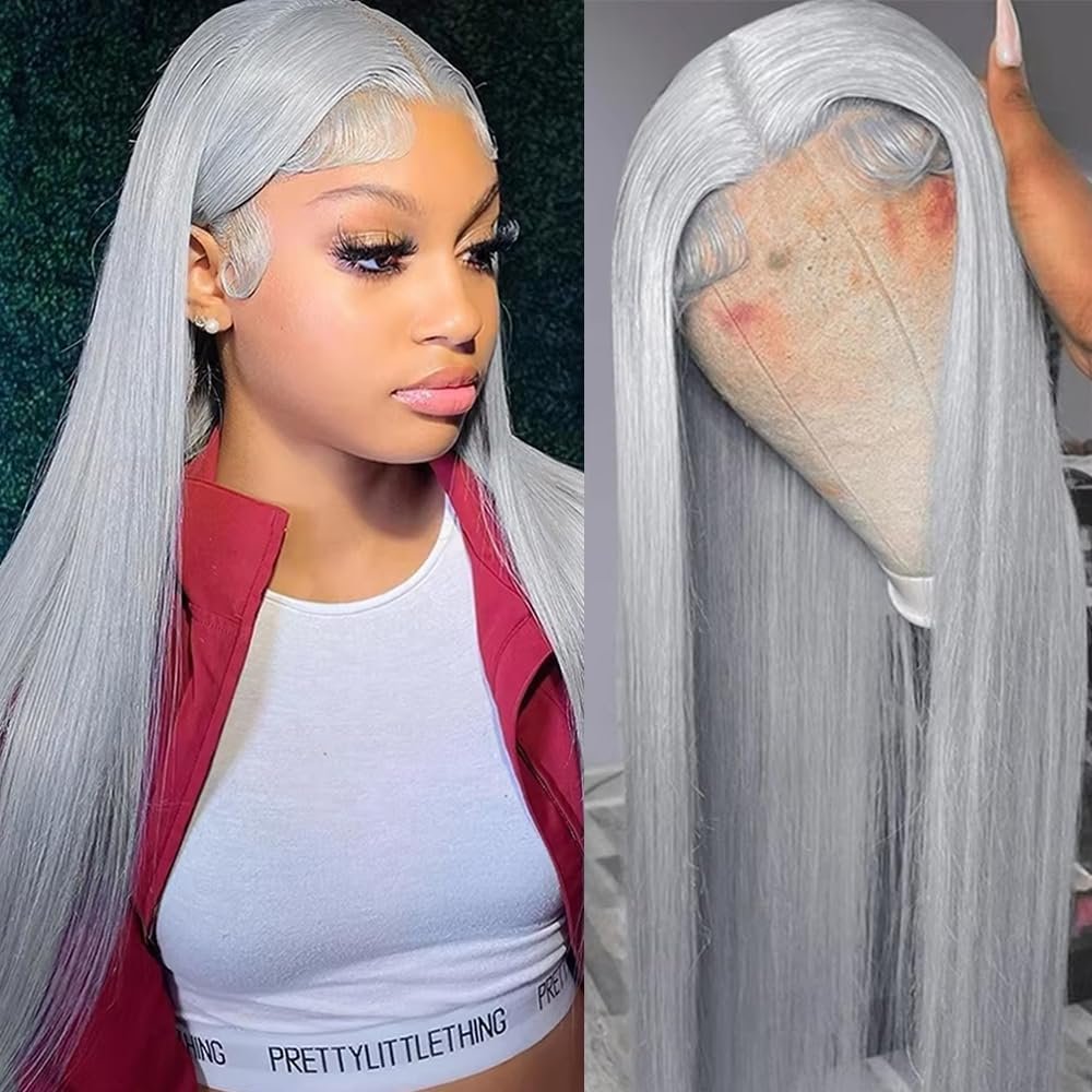 Grey Hd Lace Front Wig Human Hair Wig: Straight glueless silver grey wigs human hair for black women, can be worn in the middle or side. When you wear it, you will shine in party, birthday, travel, celebration, wedding, graduation and daily life.