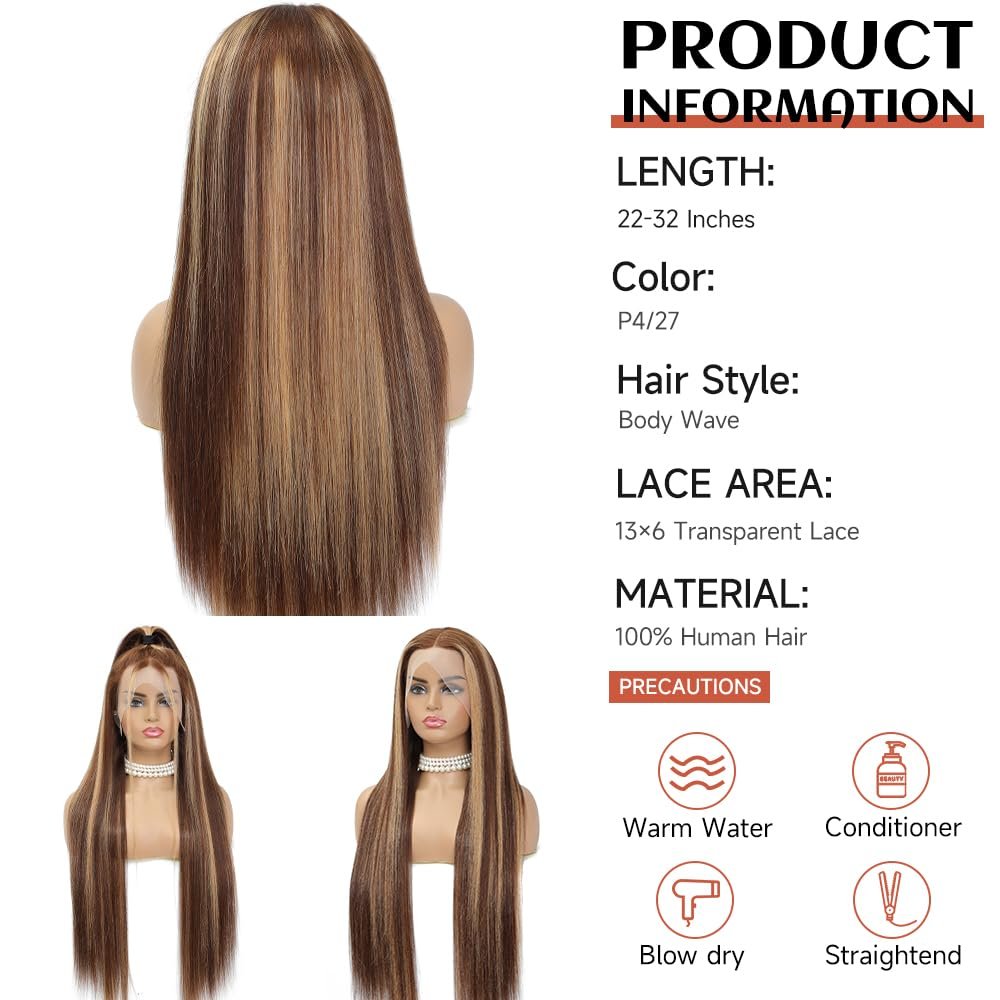 Highlight Wig Human Hair Texture: 13×6 HD Transparent Lace Can Melt Into Any Skins,Is Thin and Undetectable, Can Blend with Anyone’s Skin Tone. Straight Lace Front Wigs Human Hair Looks More Natural and Full