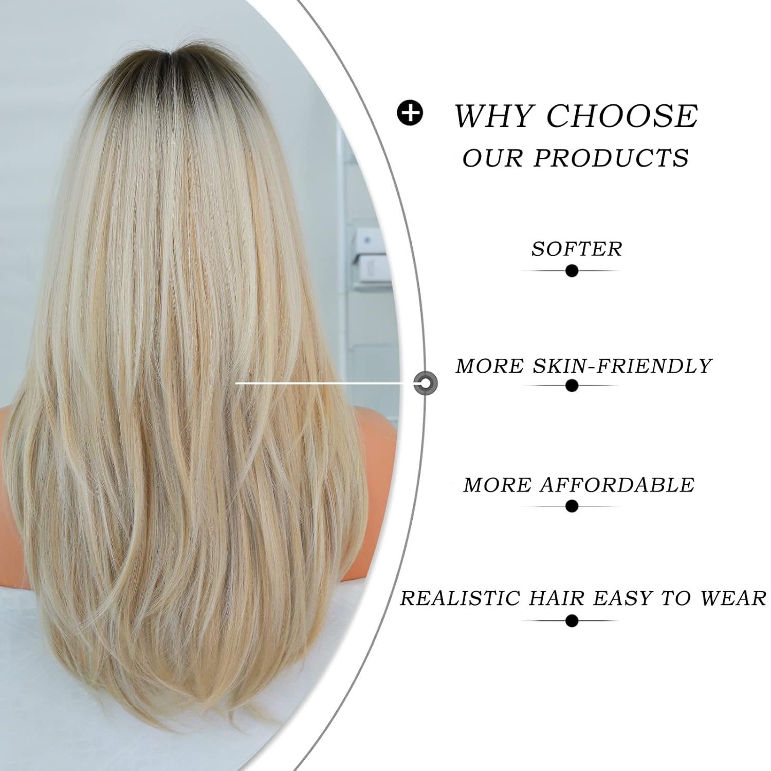 Dark Root to Blonde Hair wigs for womenNatural Hairline Looks Like Real Scalp