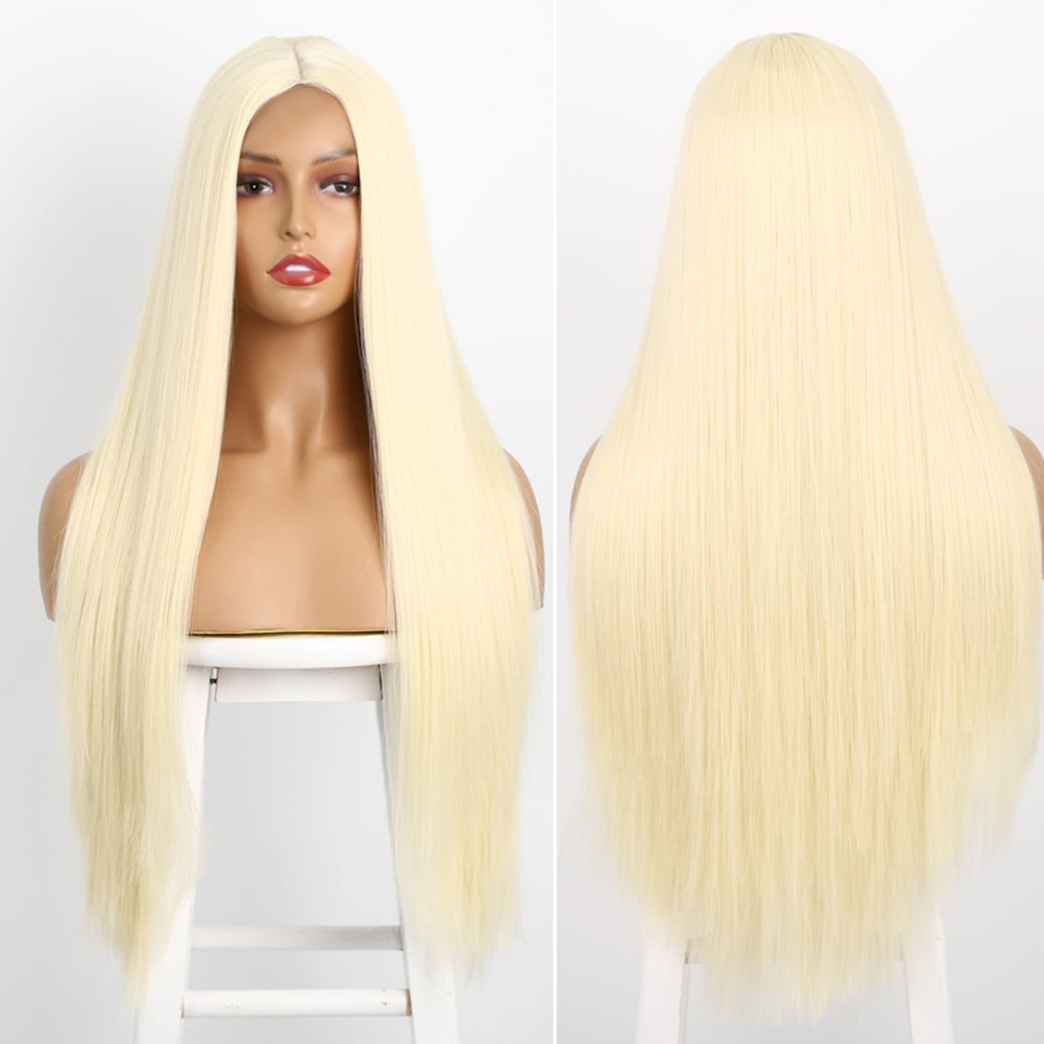 Akkya Long Blonde Wig for Women Straight Colored Synthetic Hair for Women Party Costume(28inch,Blonde)