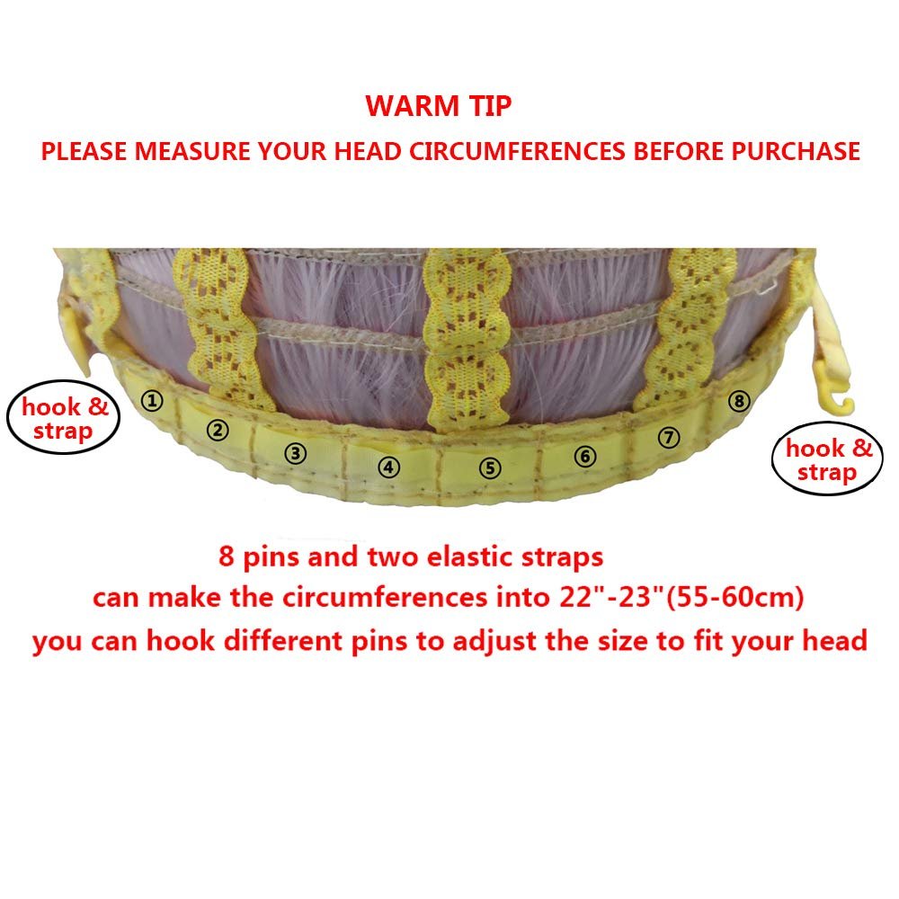 Our wig used the open welt structure design, will make it more breathable and lighter.Two straps and hooks on both sides can be intertwined to fix the position.8 Pins and the elastic straps can make the circumference into 21″-24″(53-61cm).You can hook different pins to adjust the size to fit your head.