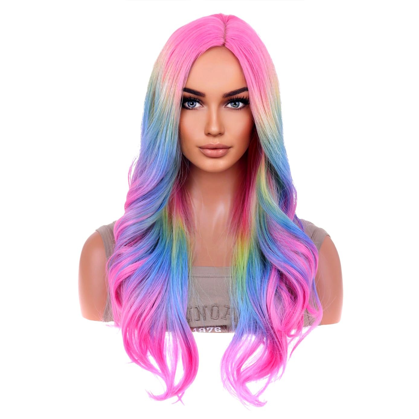 Material: premium synthetic fiber, natural looks, soft and comfortable. Can be restyled: you can cut, curl or straight it to any style you love. Please keep the heat setting below 150c. Color: Rainbow Ombre. Length: around 60cm/24 inches. Package Includes:1 *Wig1* Wig Cap