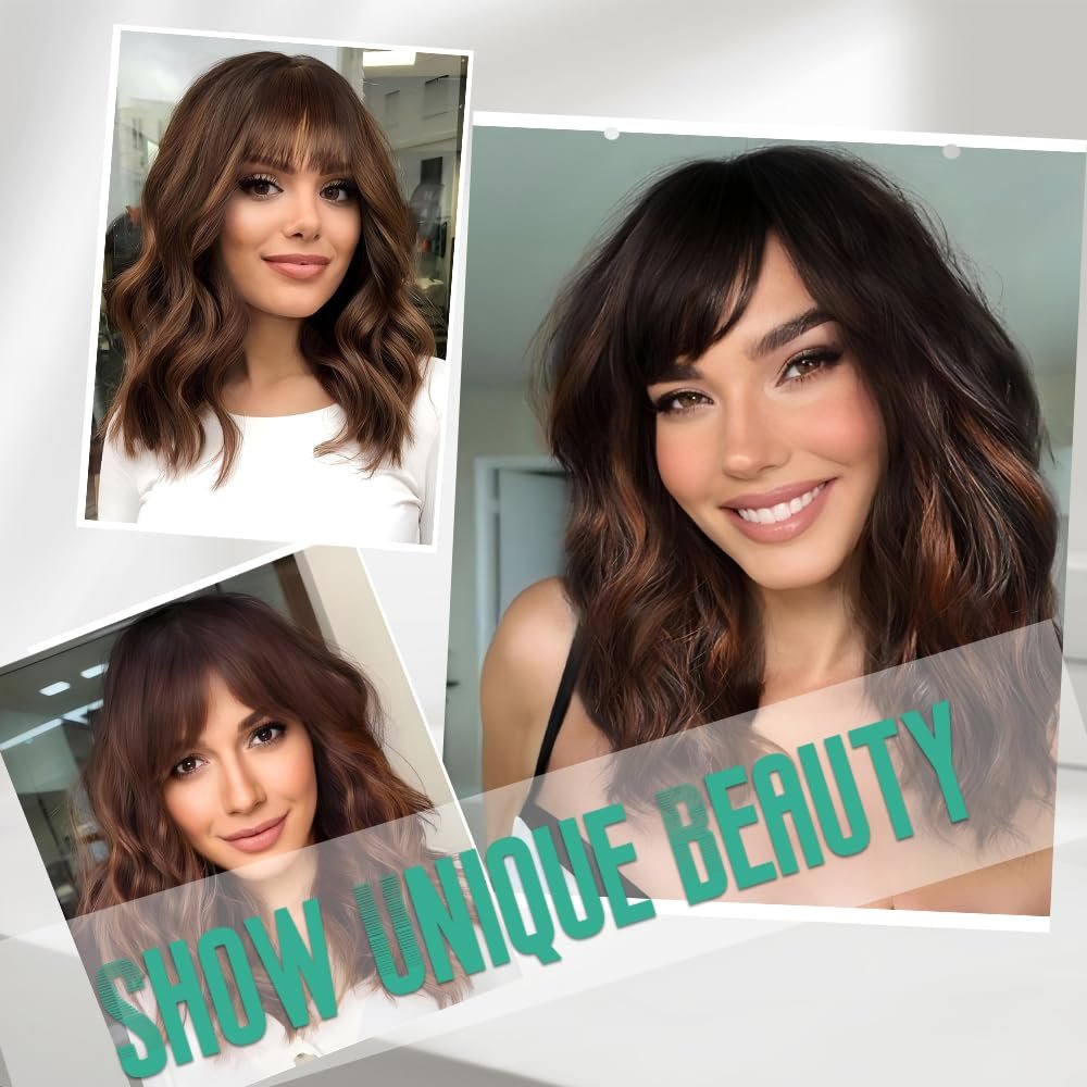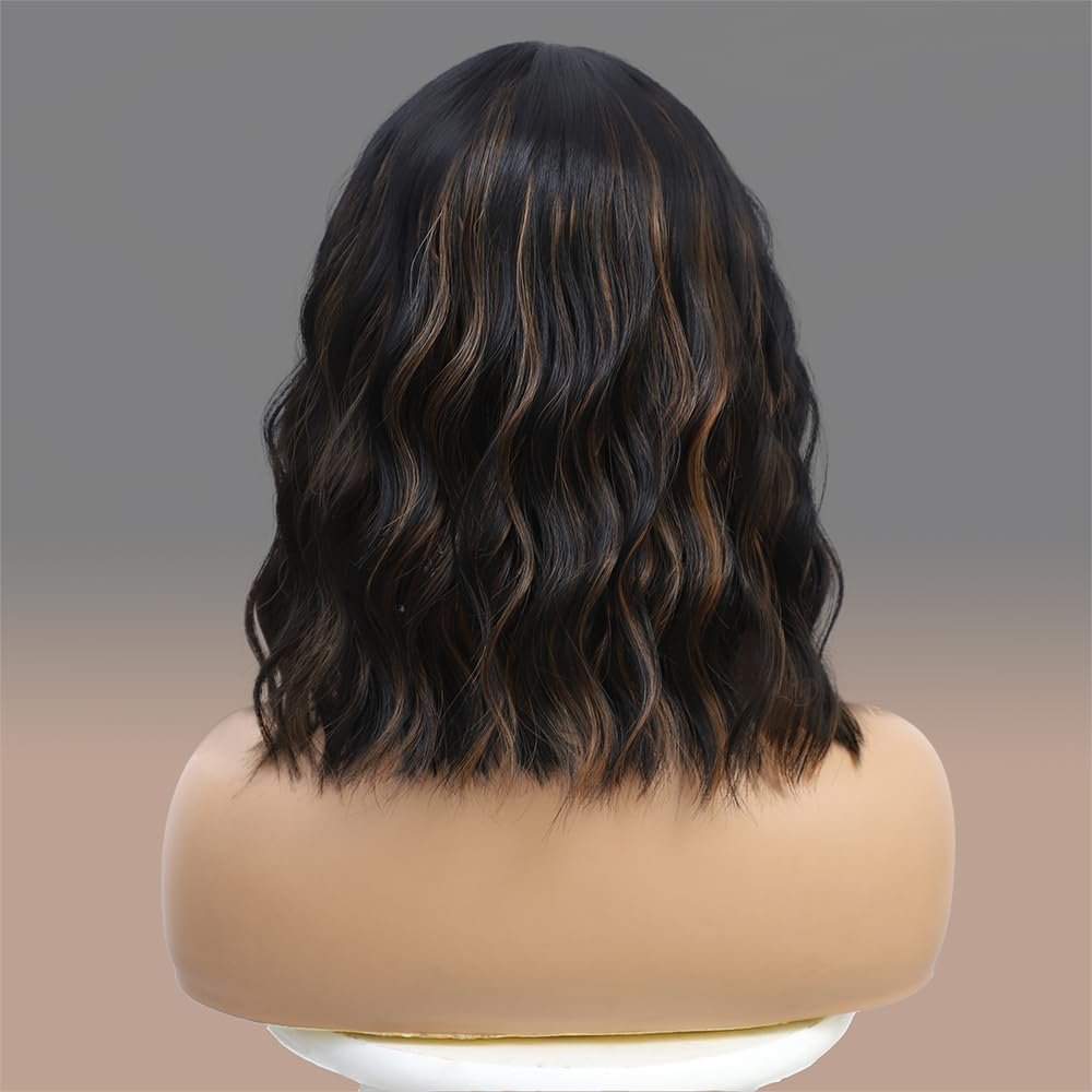 【Exquisite Design】This 14 inch curly wavy Black Mixed Brown Highlights wig with upgrade simulated scalp is realistic and natural, lasting long, the selected wig cap inside is also soft, which is more comfortable to wear