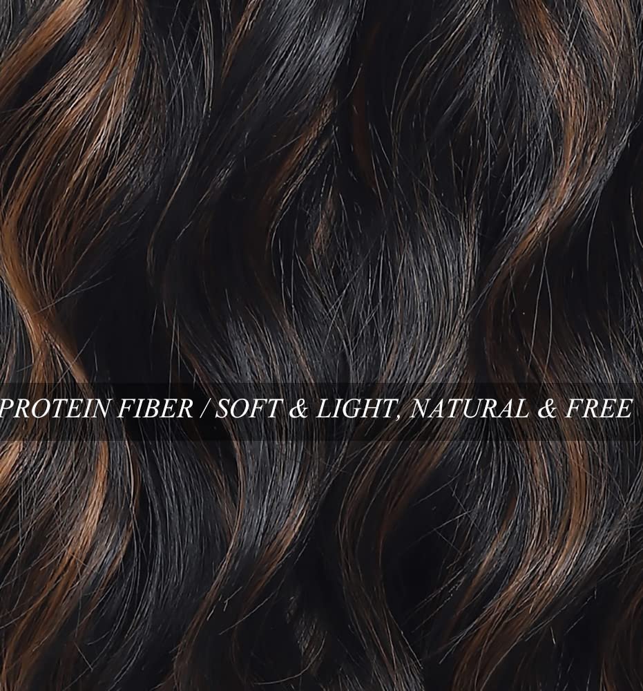 【Absolute Advantages】This upgrade Black Mixed Brown Highlights wig is made from multiple mixed improved synthetic protein fiber, it’s more natural and soft. Well Box Packaged with two Wig Caps