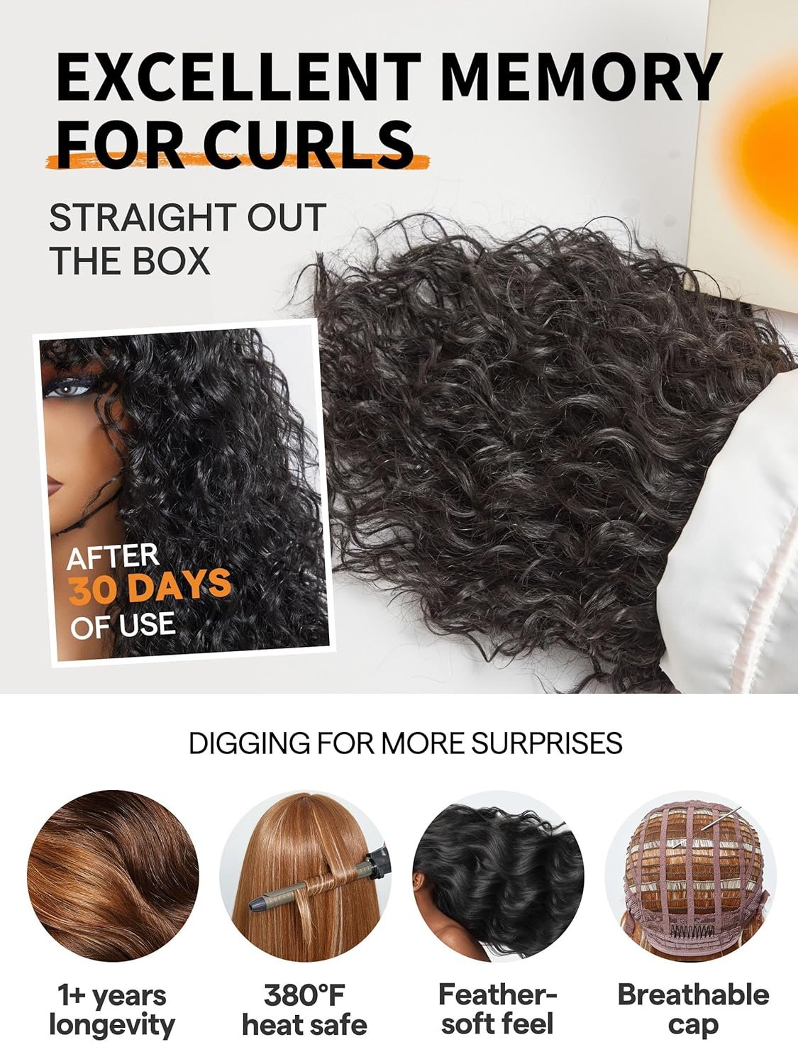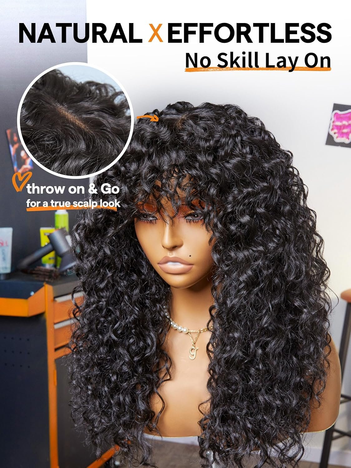 NO SKILL LAY ON: Curly wig with bangs requires no expertise for installation, making water wave wig beginner-friendly and a breeze to manage