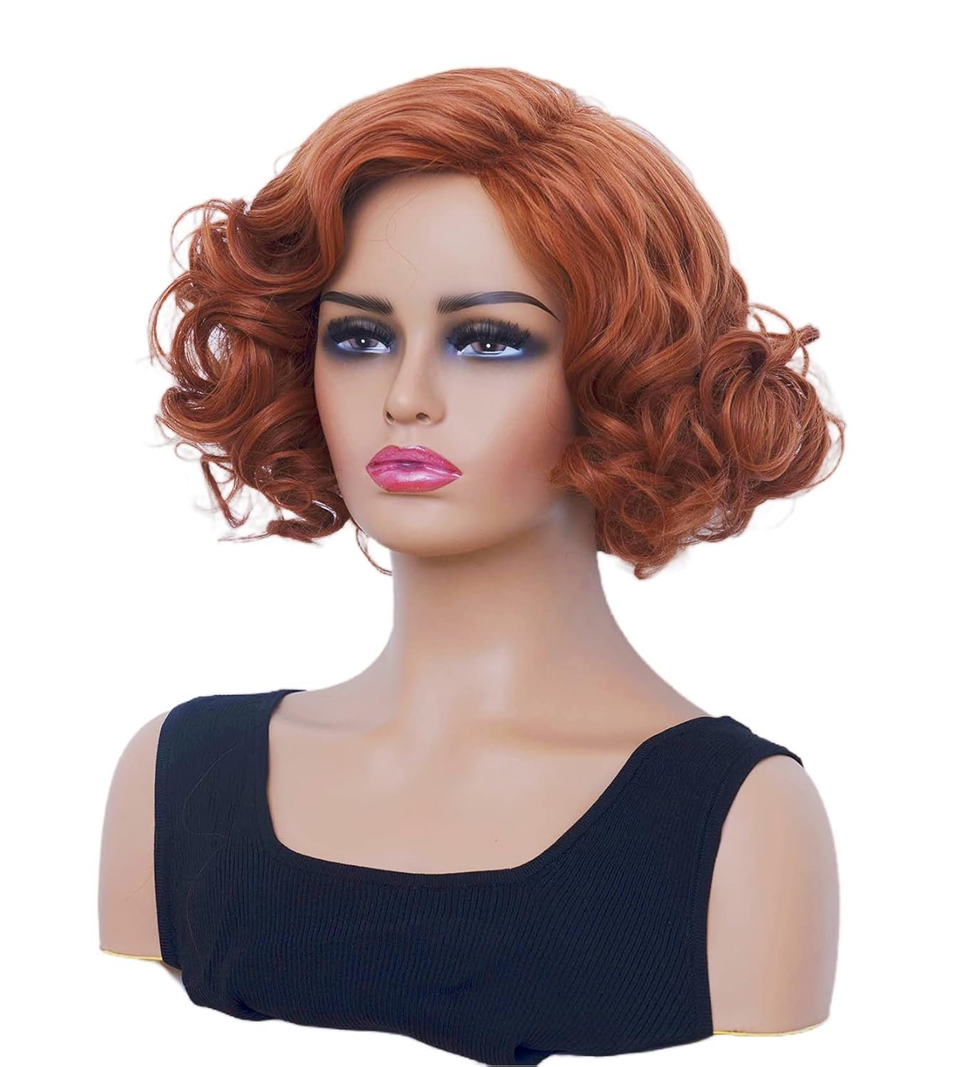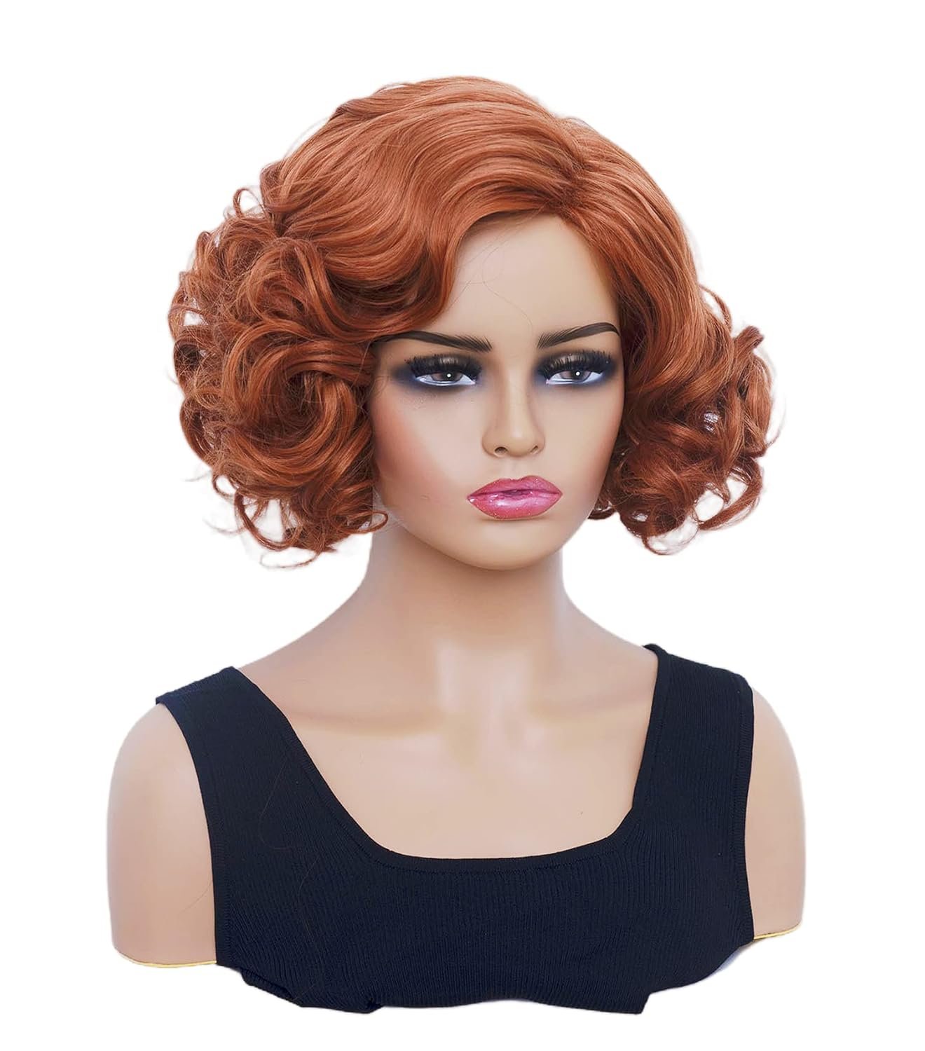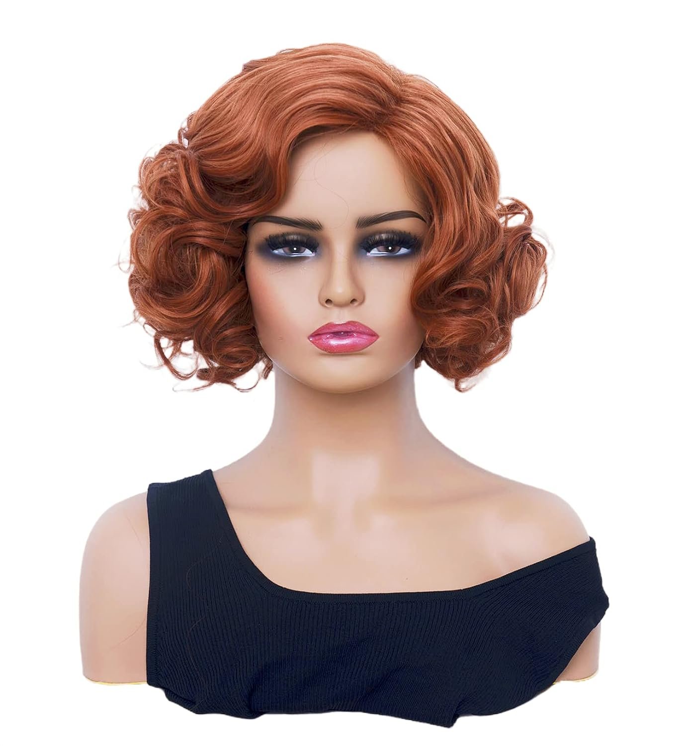 【Package】You will receive including 1 piece copper red color wavy wig,1 piece mesh net wig cap.