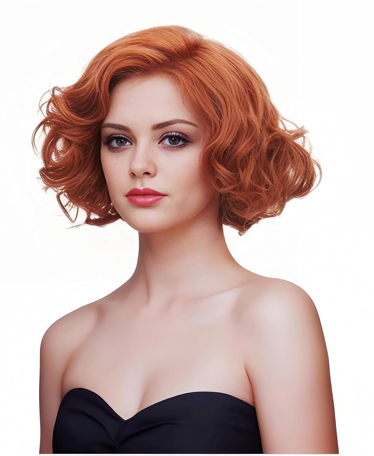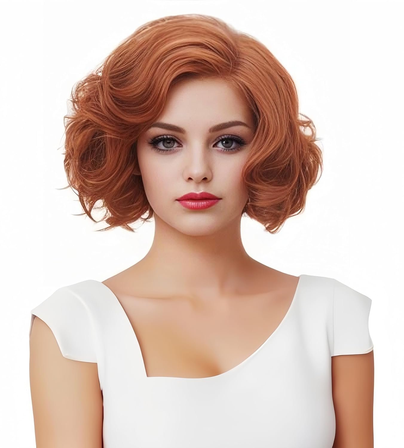 【Wear Occasion】Fashion copper red color and wavy hair style suit for various skin or head,perfect for part,Halloween,cosplay,wedding,concert,daily use.A good choose to send friend