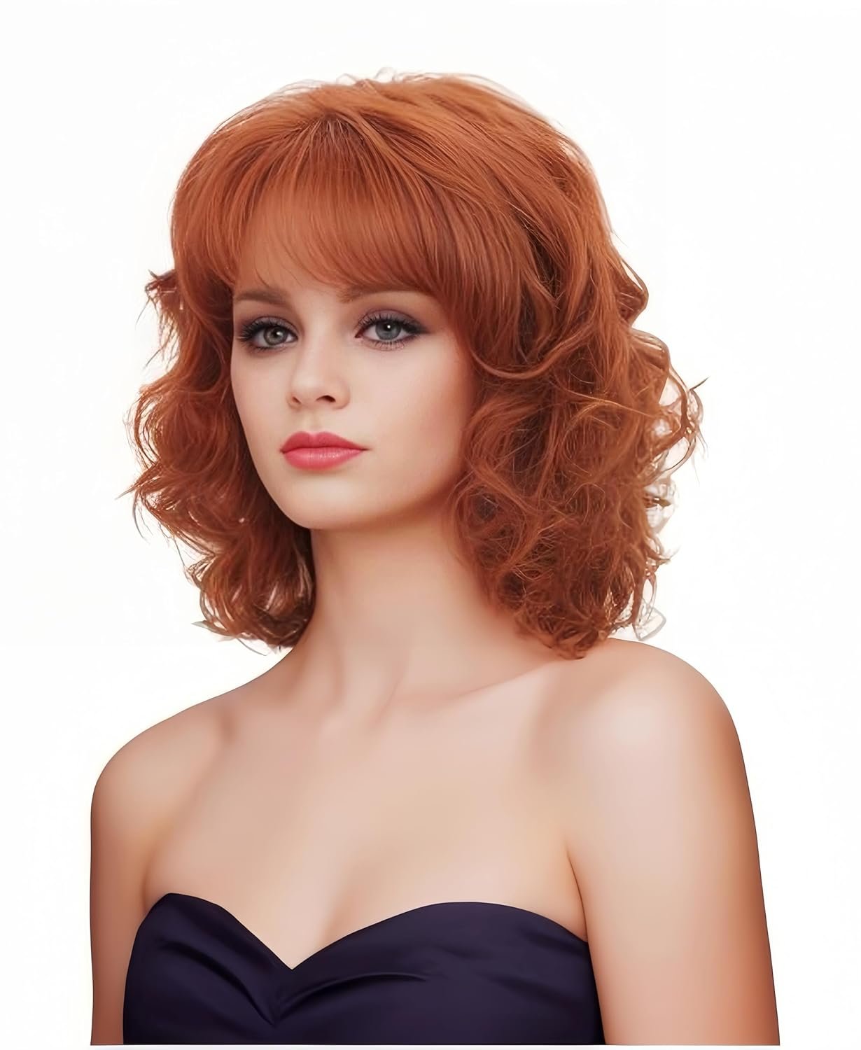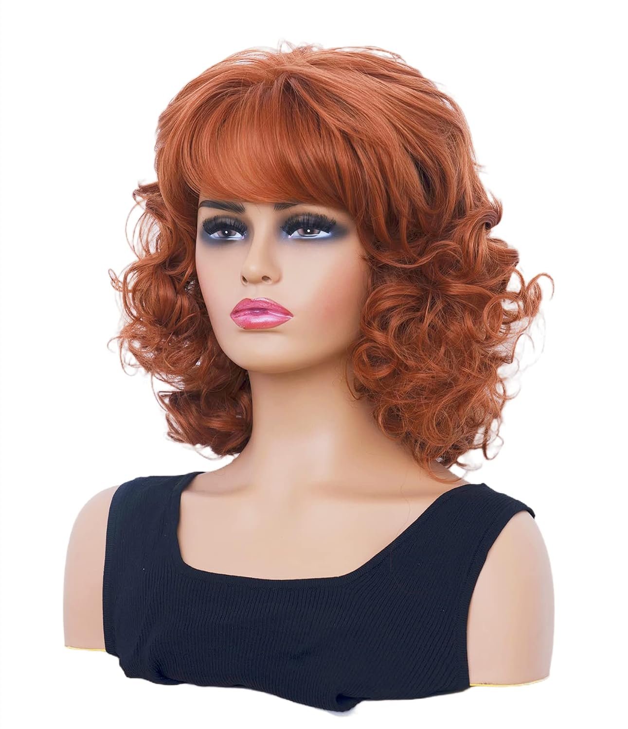 【Package】You will receive including 1 piece copper red color wavy wig,1 piece mesh net wig cap.