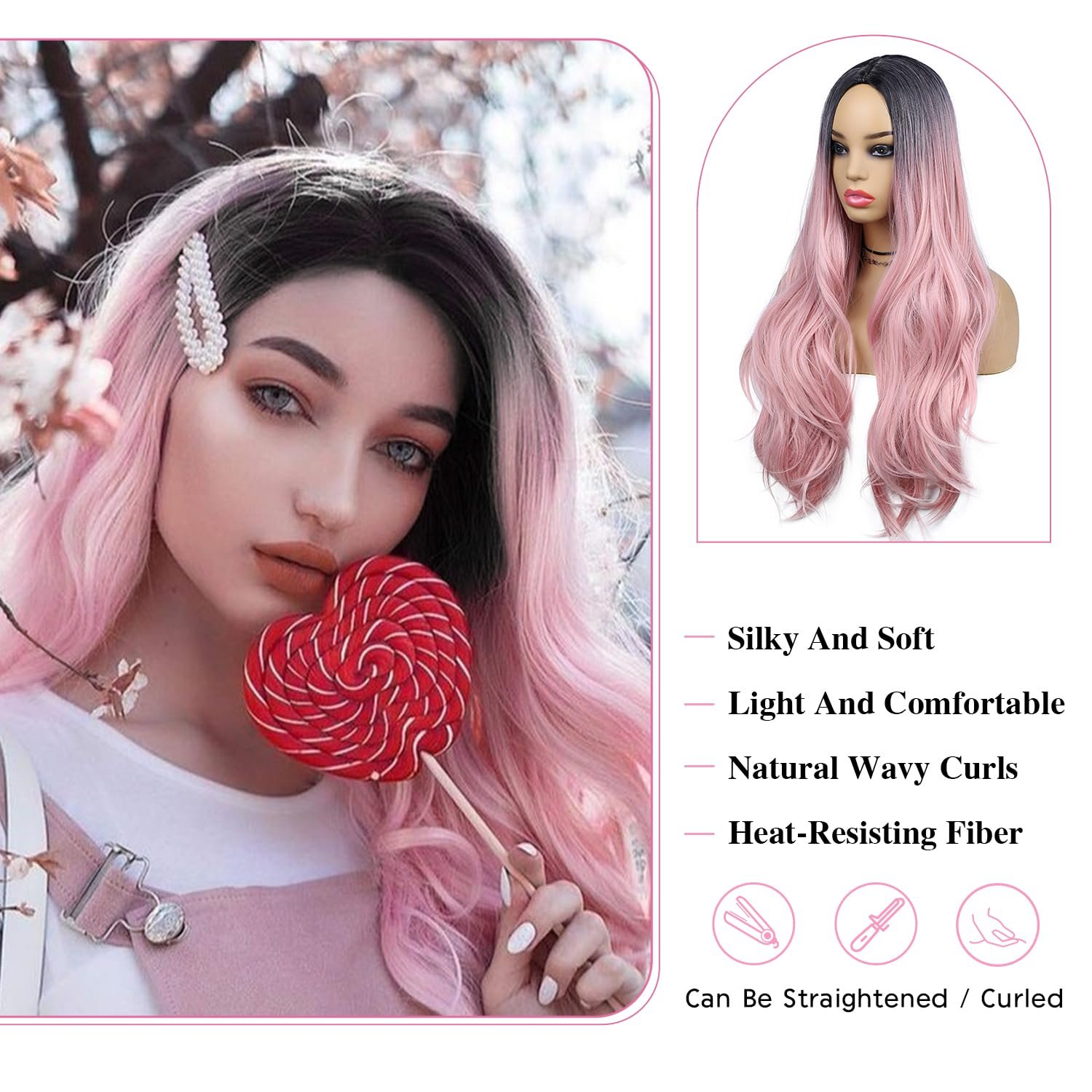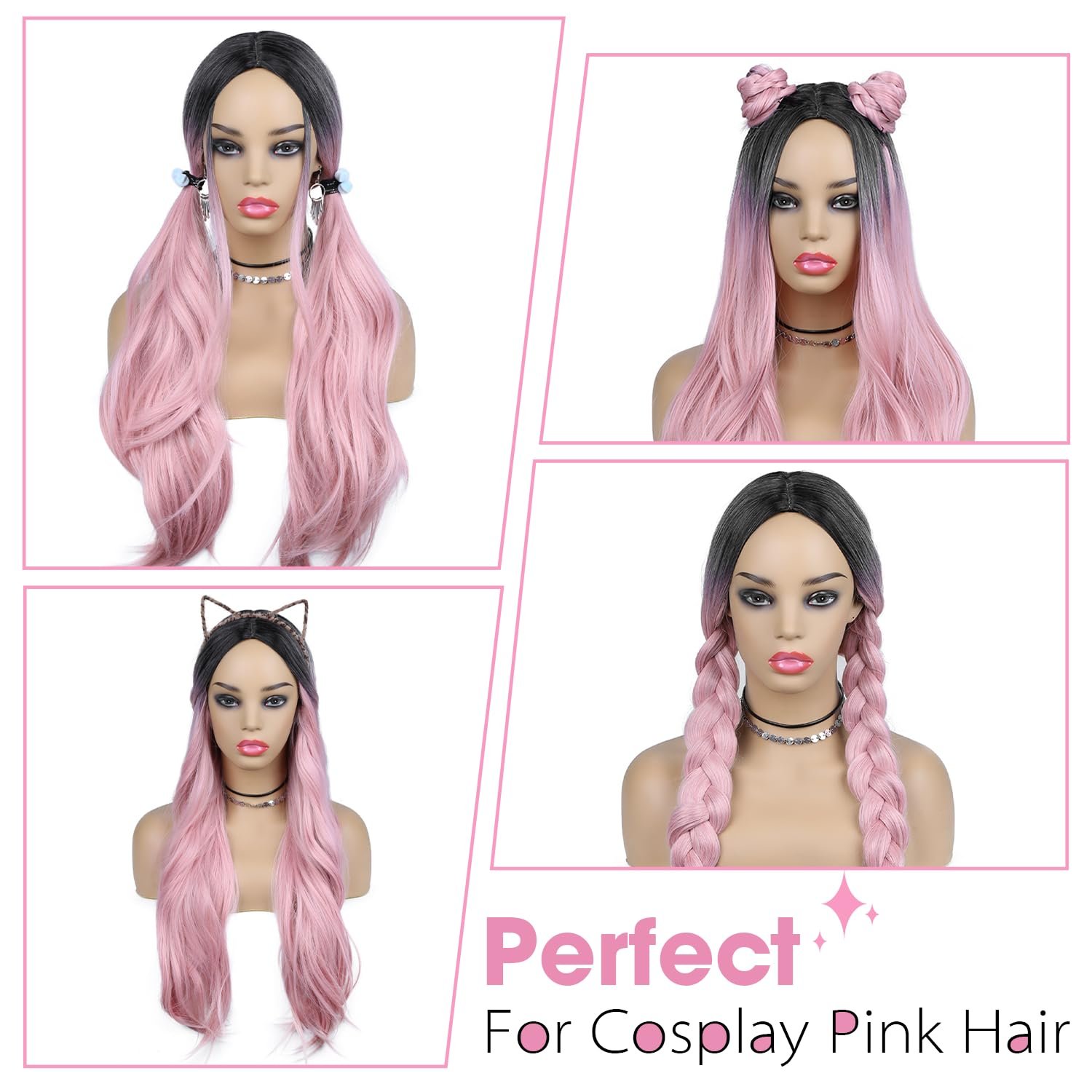 3.Wig Function: The long wavy pink wig is perfect for Cosplay, Carnival, Halloween, Masquerade, Theme parties, Dating, Daily use and any other occasions.