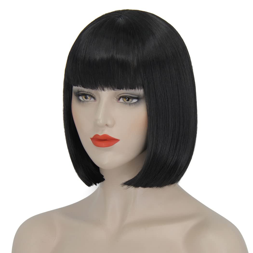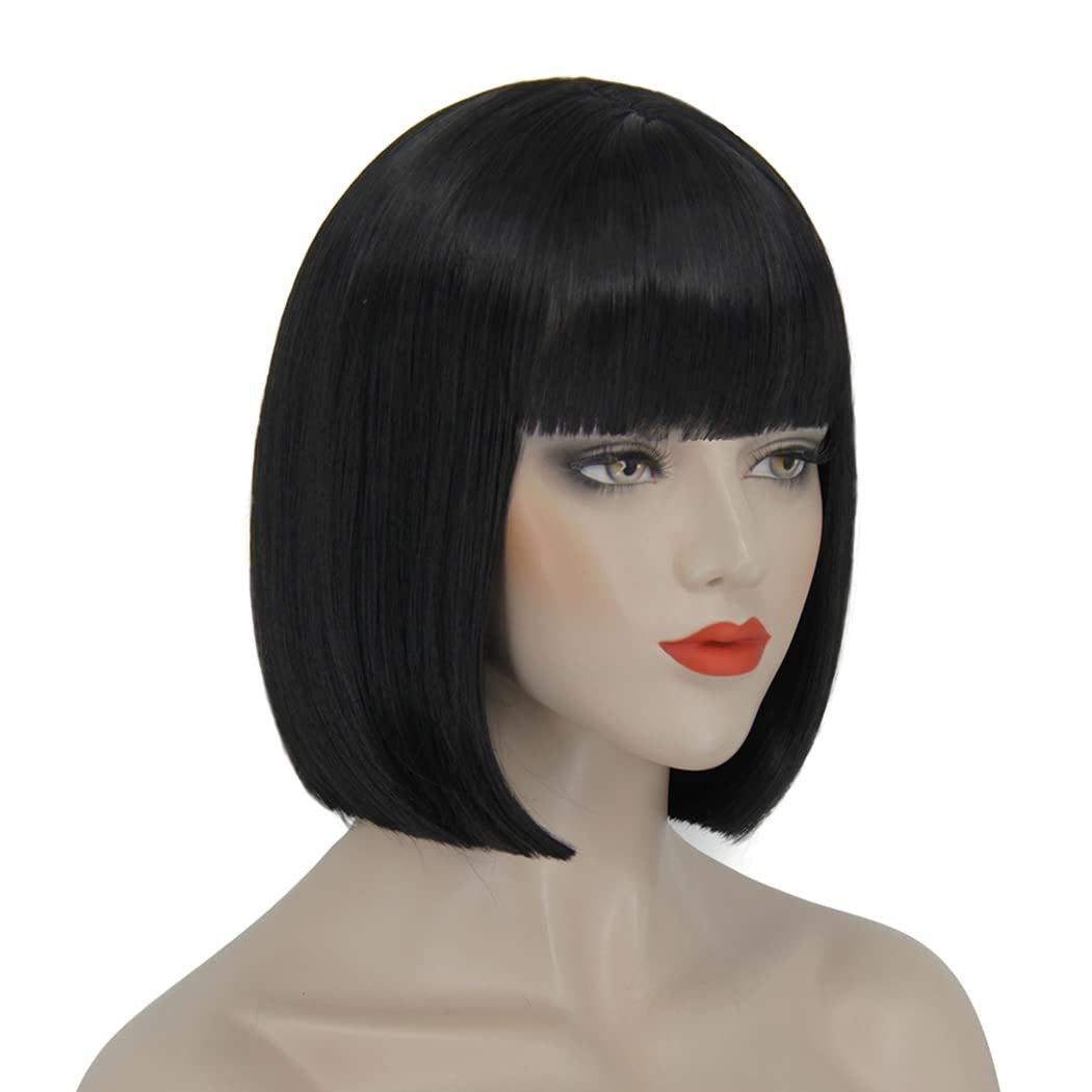 💟 Wig Color & Length: Black wig, 12” Short cute bob wig with bangs, very light and easy to put on, immediately shows a new sexy style