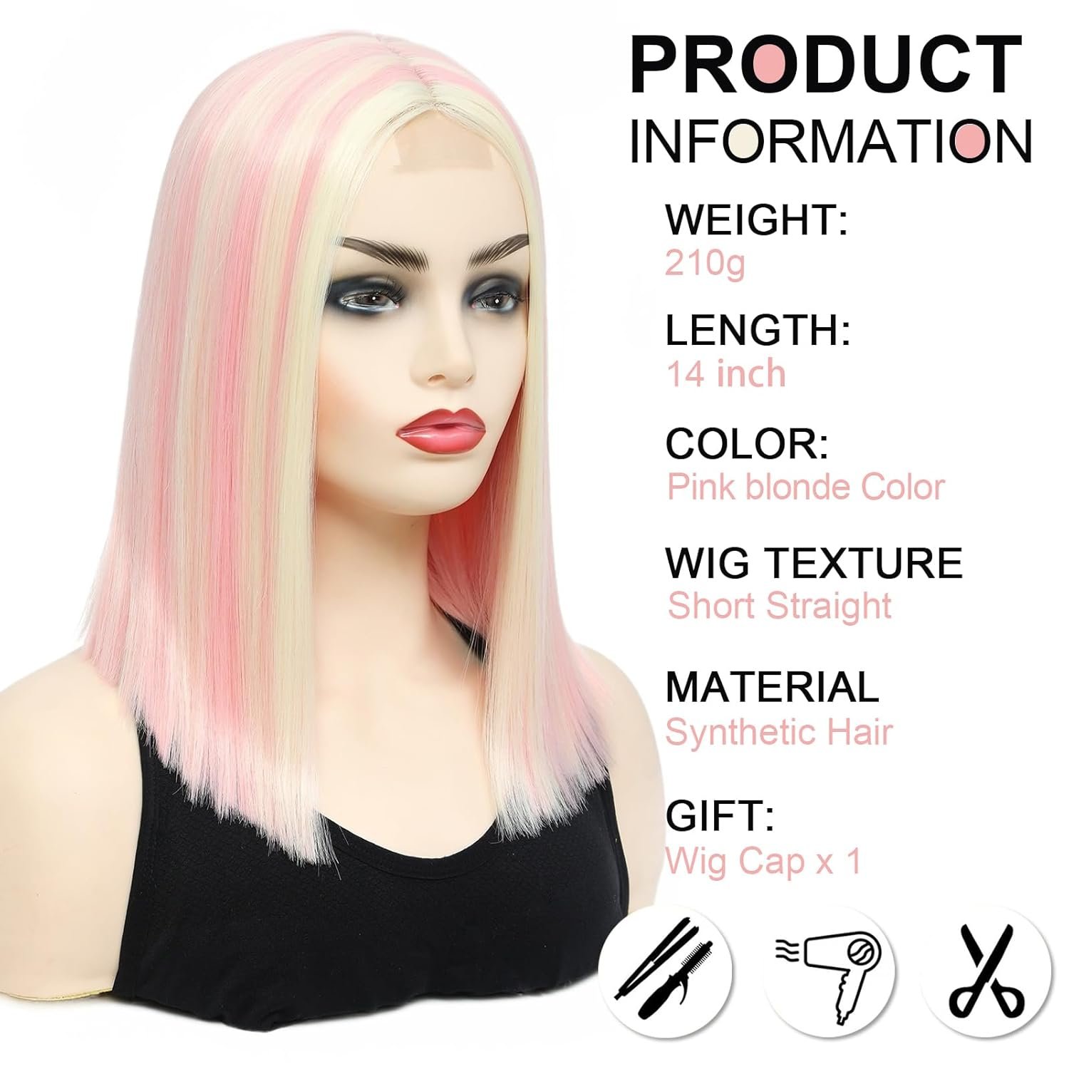 Suitable For Many Occasions: The realistic straight natural blonde bob wig can help you perfectly match all occasions, whether it is daily work, weddings, parties, nightclubs, concerts, role-playing, theme parties, Halloween ,Christmas or video shooting, it is the best choice makes you the focus of the crowd. Pink blonde wigs for women is also a great gift for relatives and friends.