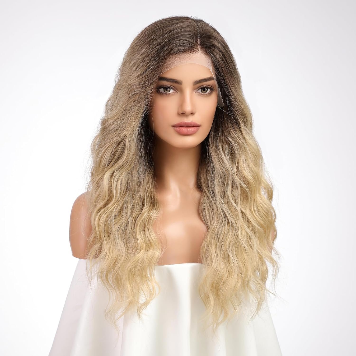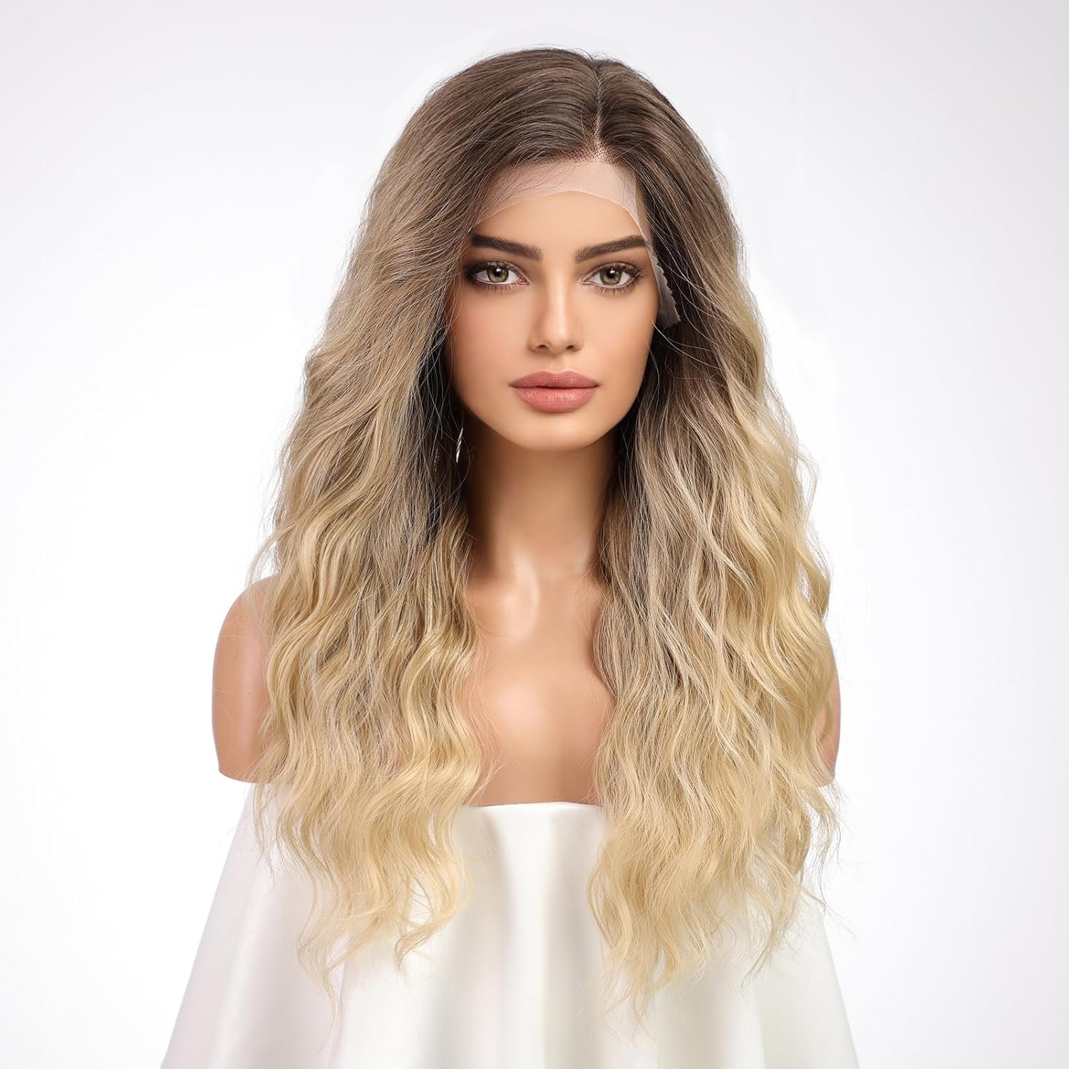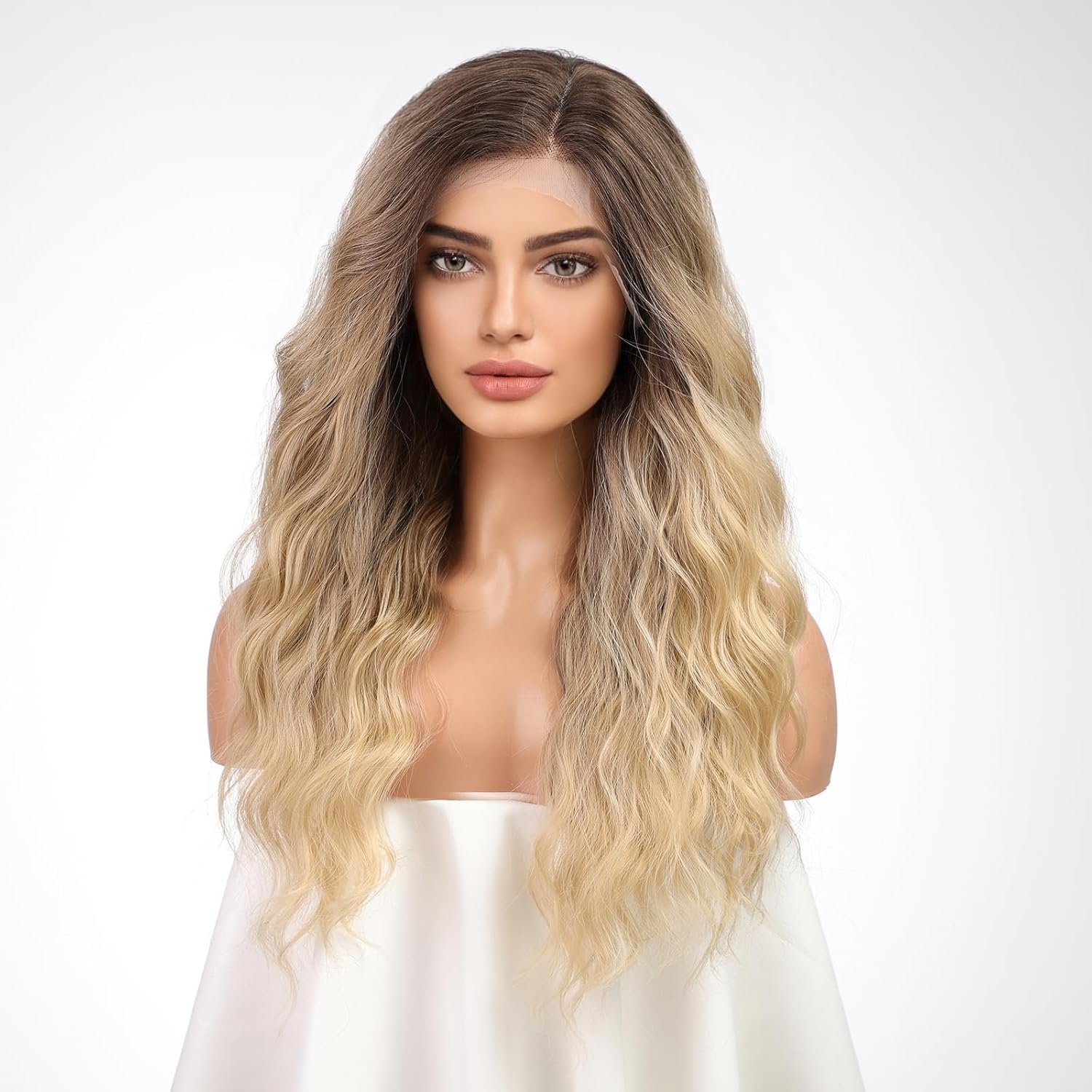 BLONDE UNICORN Ombre Blonde Lace Front Wig Long Wavy Synthetic Wig Side Part Hair Wig for Women (ombre blonde wig)…