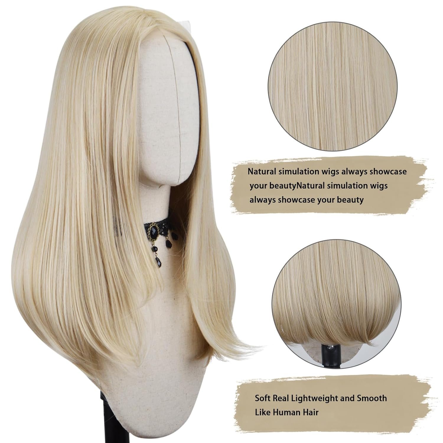 【Premium Material】:The long straight blonde wig made of high-temperature resistant synthetic fiber and stands heat up to 160°c(320°f). The hairline is made hand-tied, which makes the hair look more real. Easy to comb and not easily tangle and hair loss