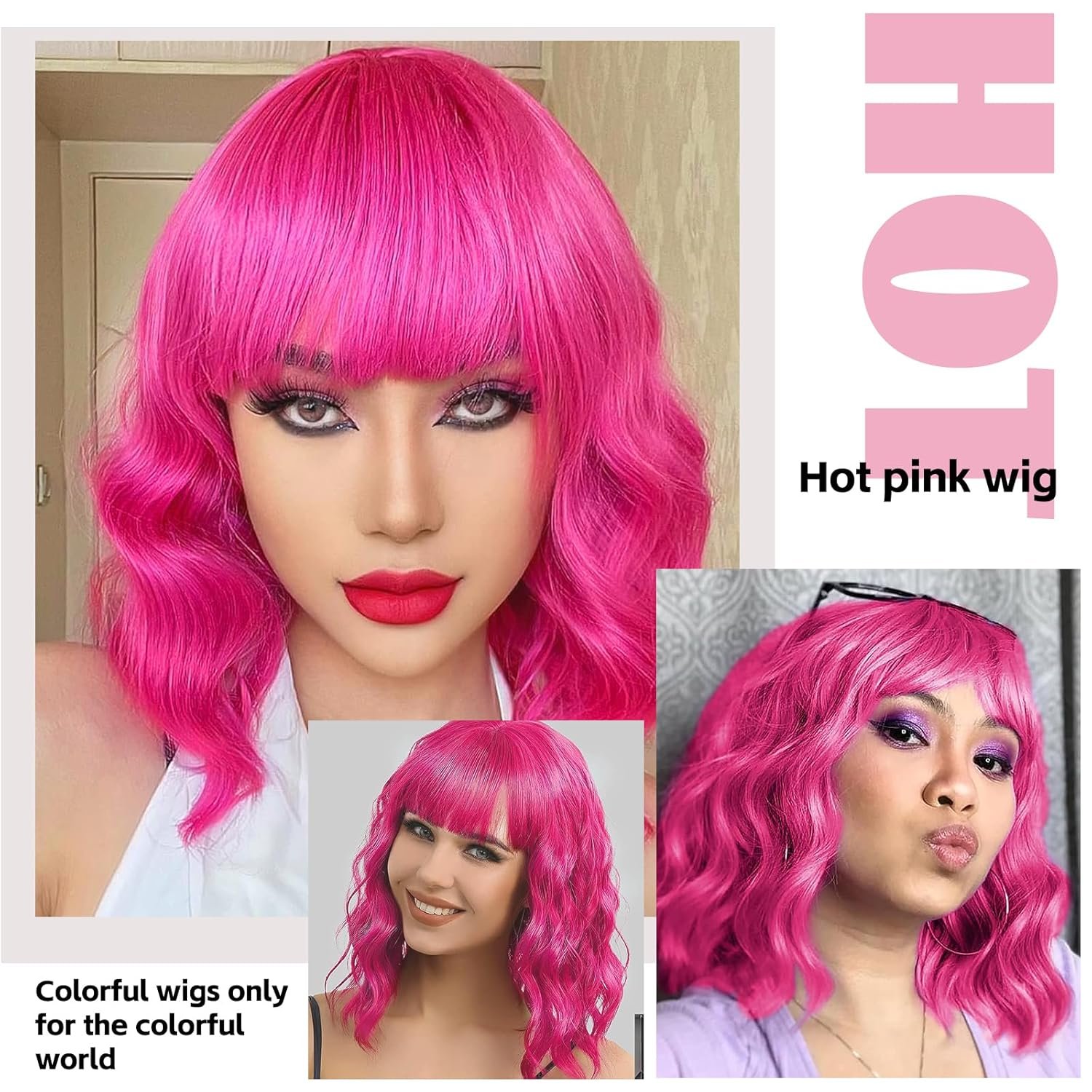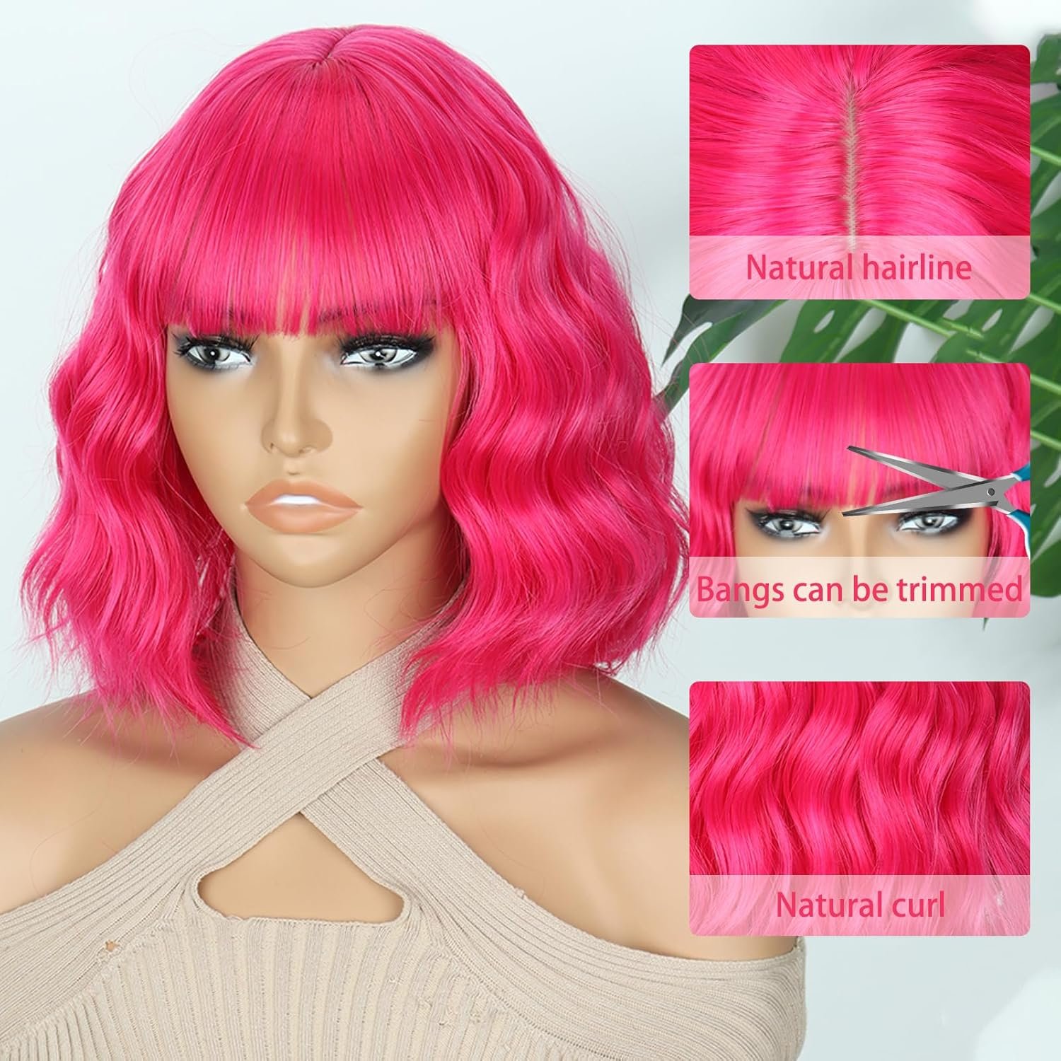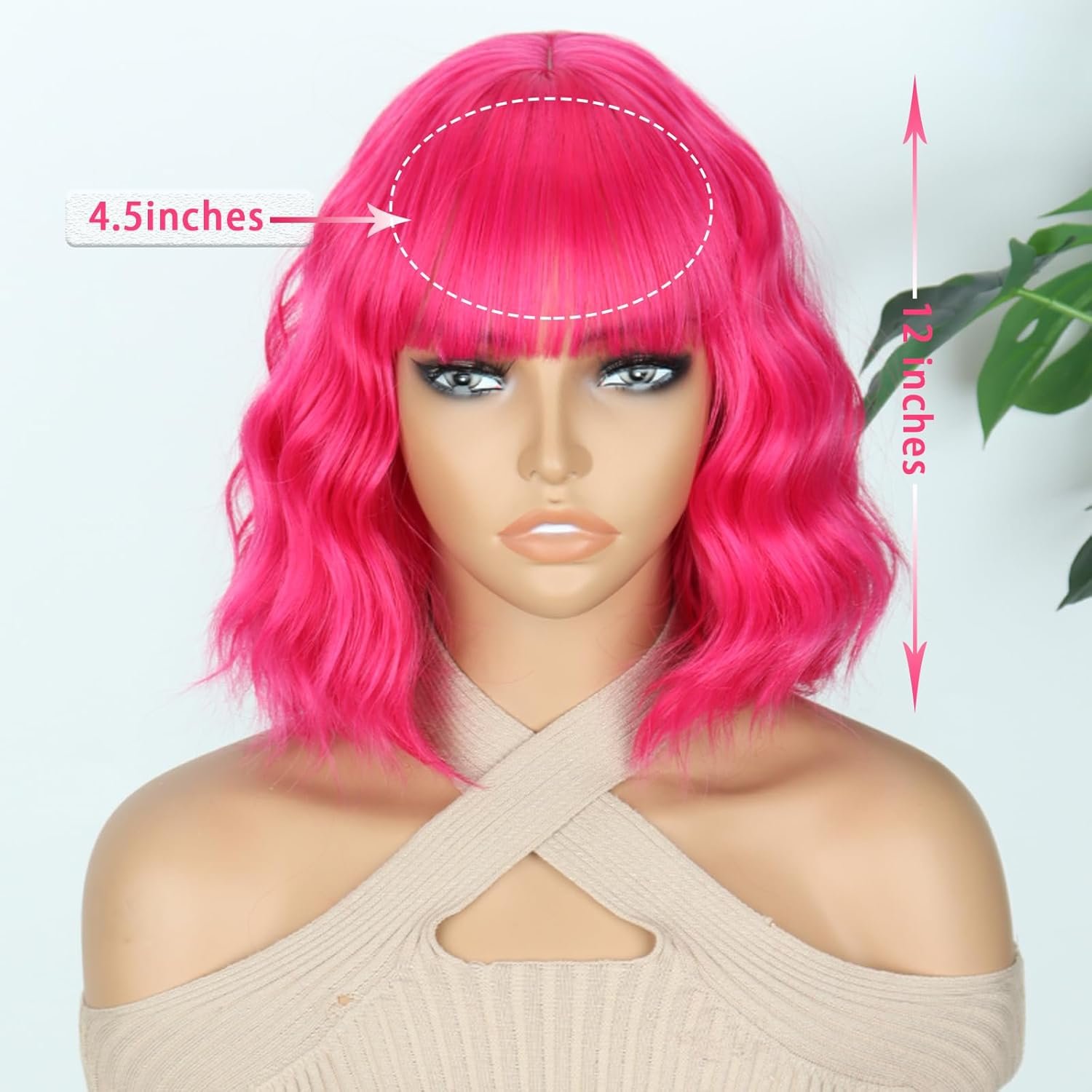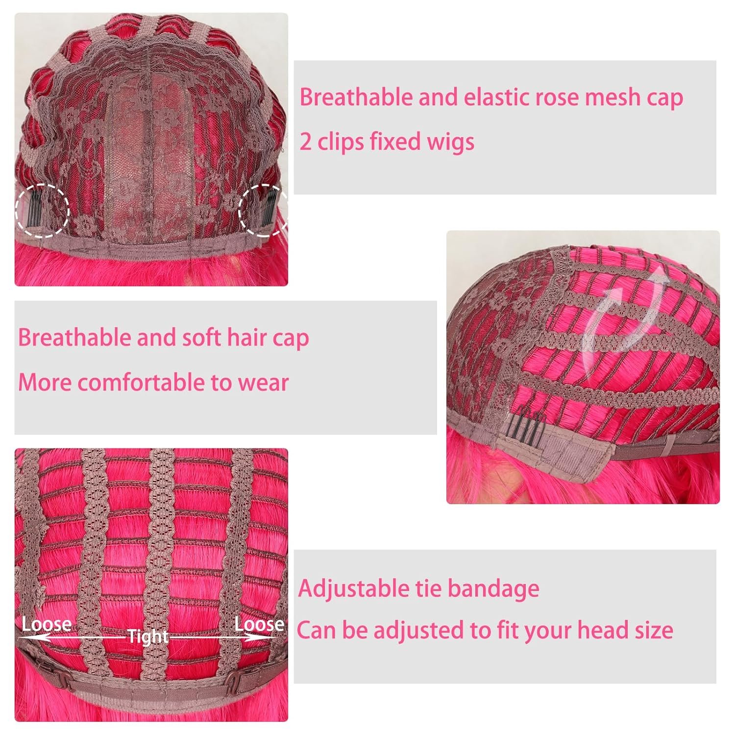 Specification: Length:13.5″-14″ from top to end, 21.5″-22″ from front to back(the bangs and scalp included), Weight-200g Approx, Color-Hot Pink.