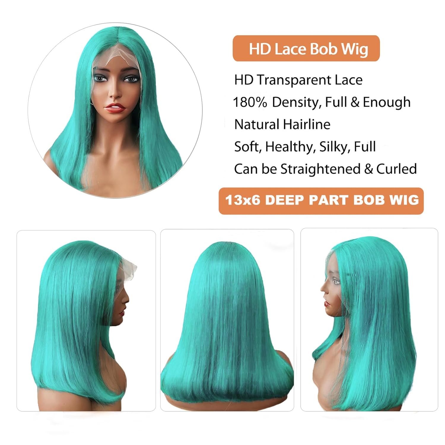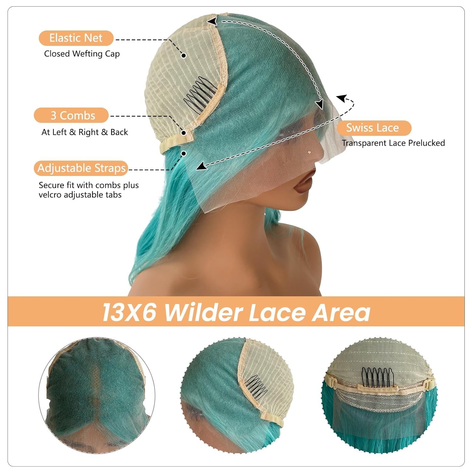 【Lake Blue Colored Bob Wig Human Hair Cap】: Medium Size (21-22.5 Inch) 3 Combs And Straps(Default), Secure And Comfortable. Glueless Design Average Wig Cap One Size For All With Adjustable Hook Straps, And 3 Comb Clips At Side And Back Help You Secure Your Bob Wigs When In Gym Or Swimming, Wigs Stay In Place