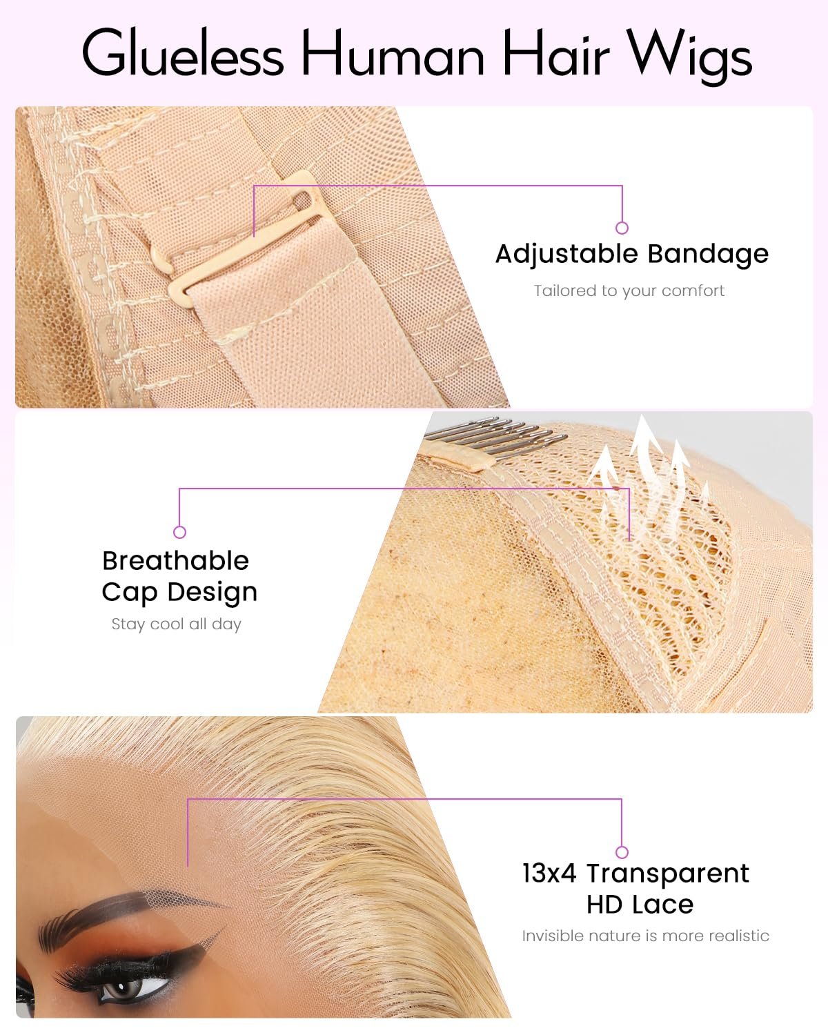 Ready to Go Glueless Wig Cap Details : 613 Straight Lace Front Wigs Human Hair,Medium Size Flexible Cap with A Removable Elastic Band,No Clips or Combs Inside Makes the Wig Comfortable Wearing.