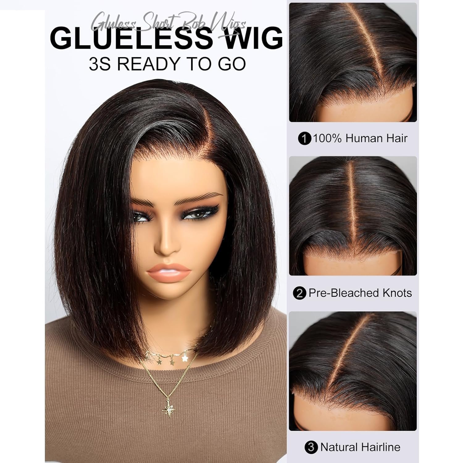 5×6 Wear and Go Glueless Lace Front Straight Bob Wigs Human Hair Material: High Quality Brazilian Human Hair, Healthy and Vibrant, Comfortable Against Skin.