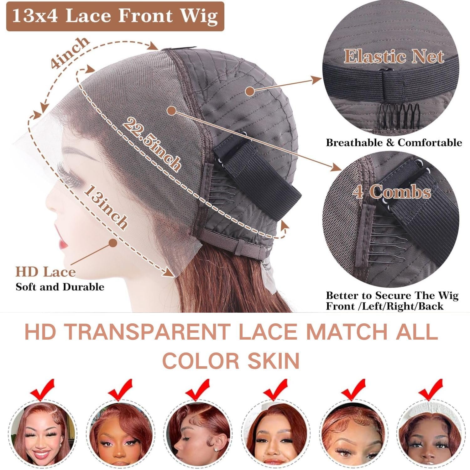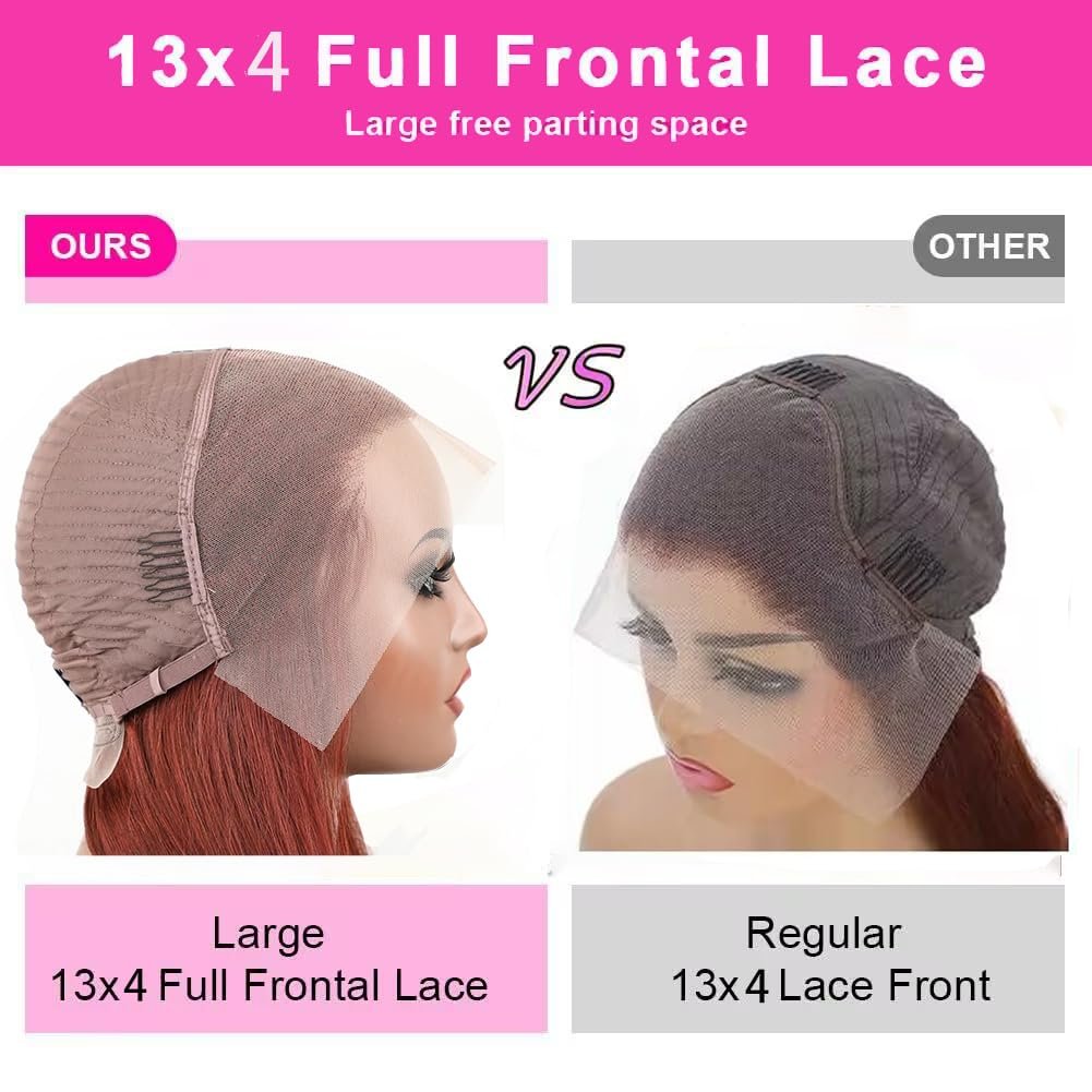 Reddish Brown lace front wigs human hair Texture:Reddish Brown lace front wig human hair, 13X4 HD LACE LARGE SPACE–The 13×4 full frontal wigs are the most versatile and offer a full frontal parting, 13×4 hd lace front wigs human hair 180% density allowing you to create any parting style you desire. Say goodbye to limited side parting!