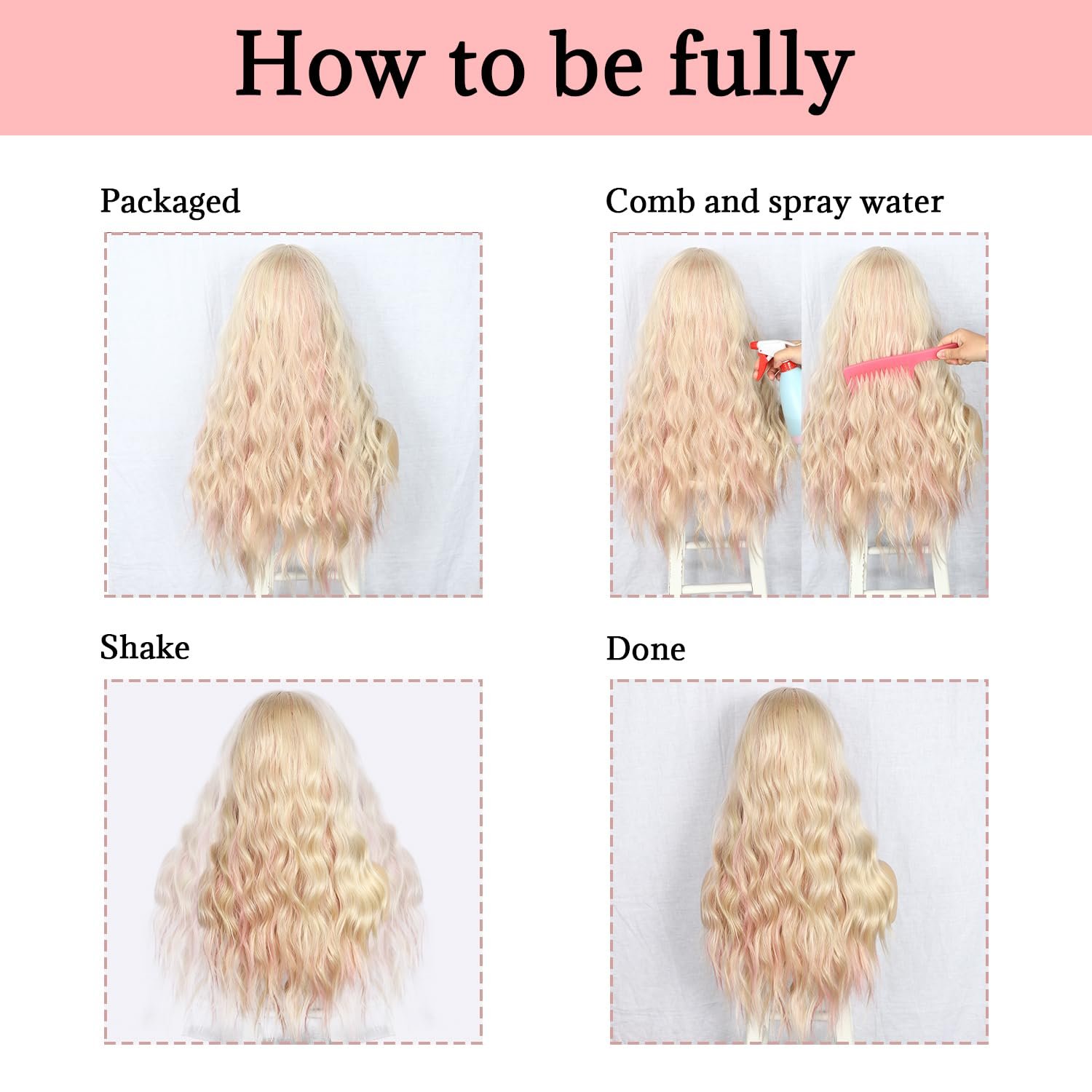 【Kind Tips】 All synthetic wigs will shed slightly especially when you wear for the first time.Due to differences in lighting and screen displays,there may be slight color differences,which is all normal.Use your finger or wide-tooth brush to comb it when you first wear it or spray some diluted hair conditioner on it to make it better.