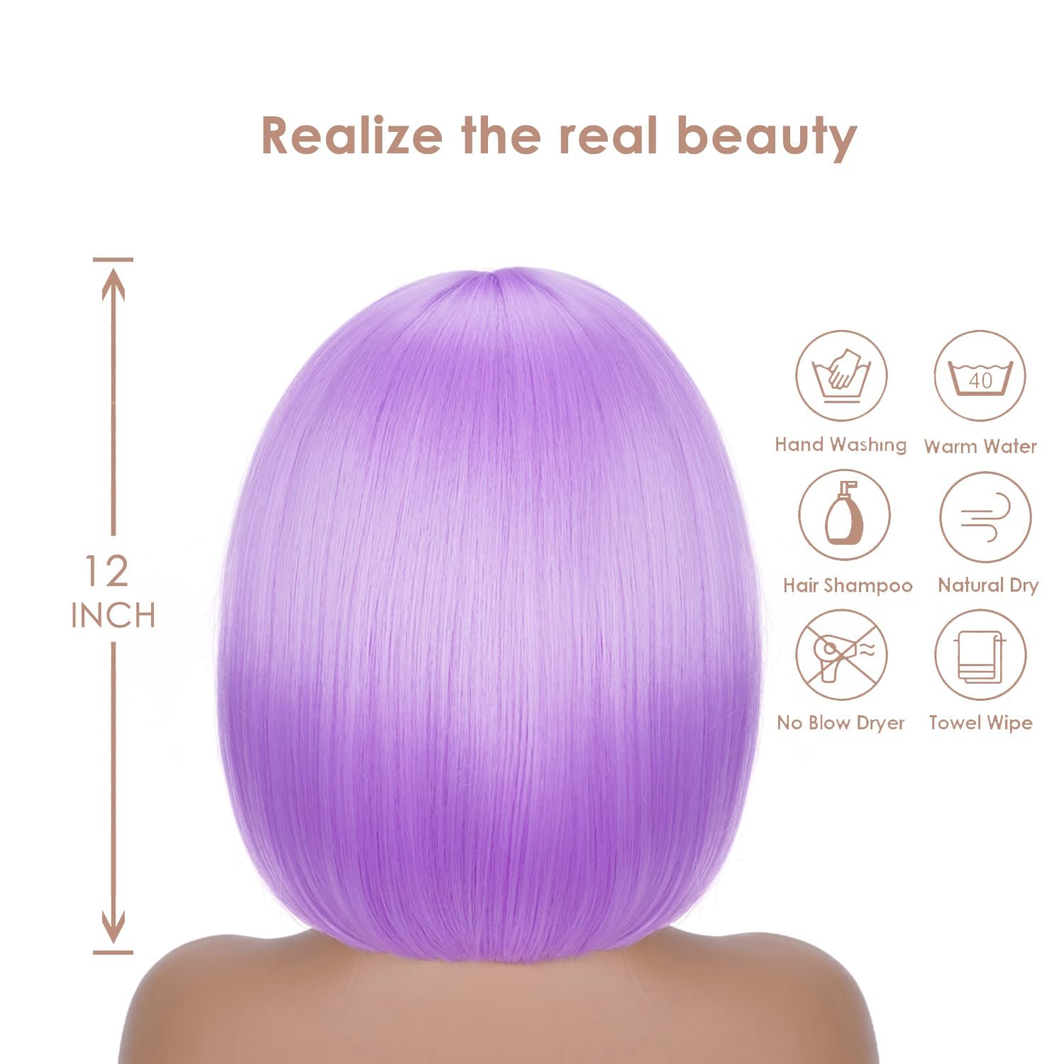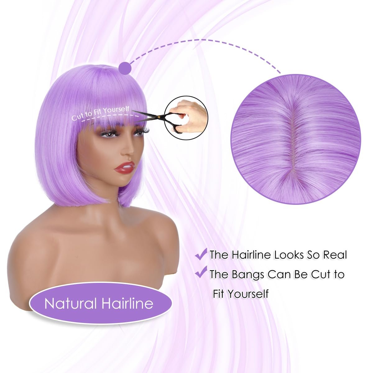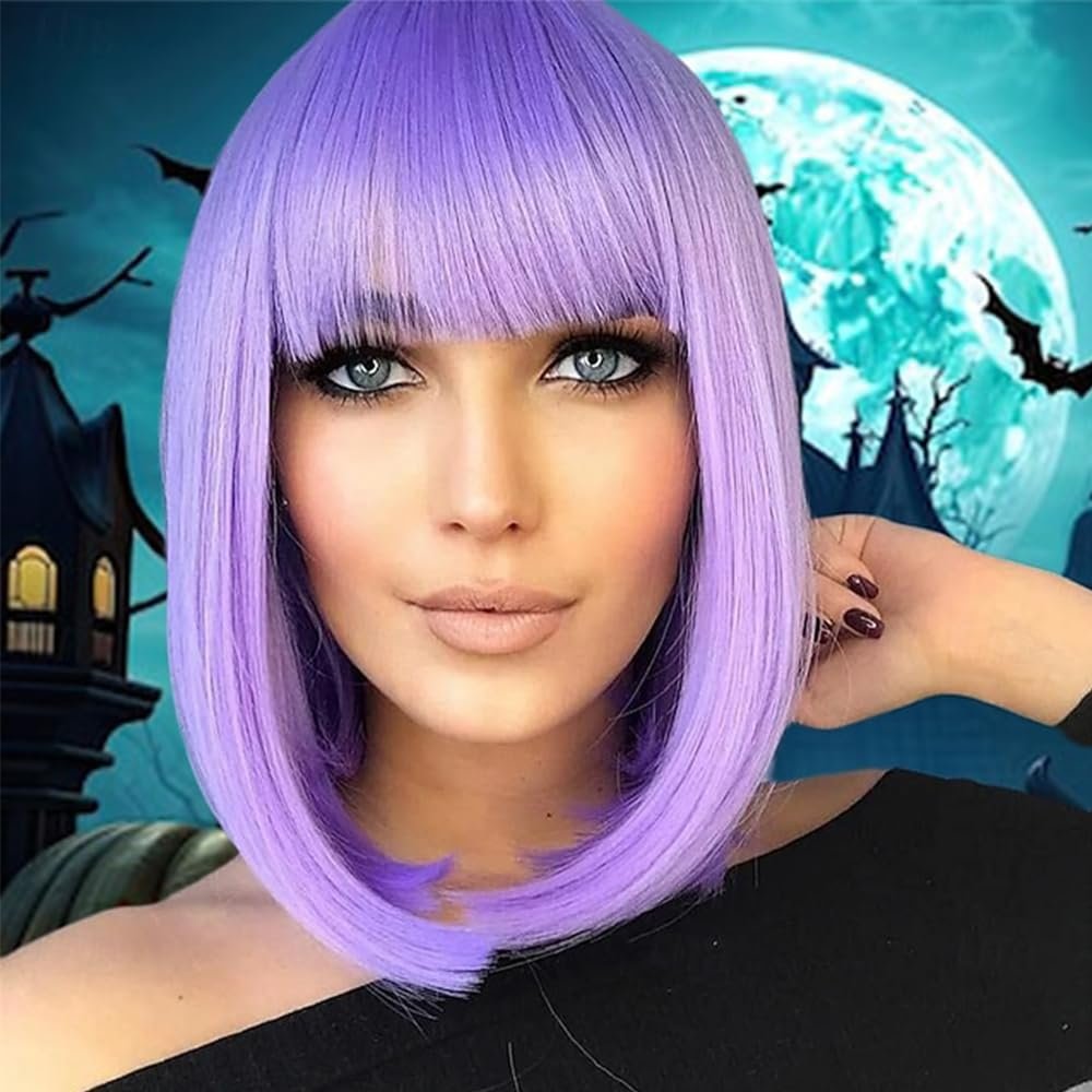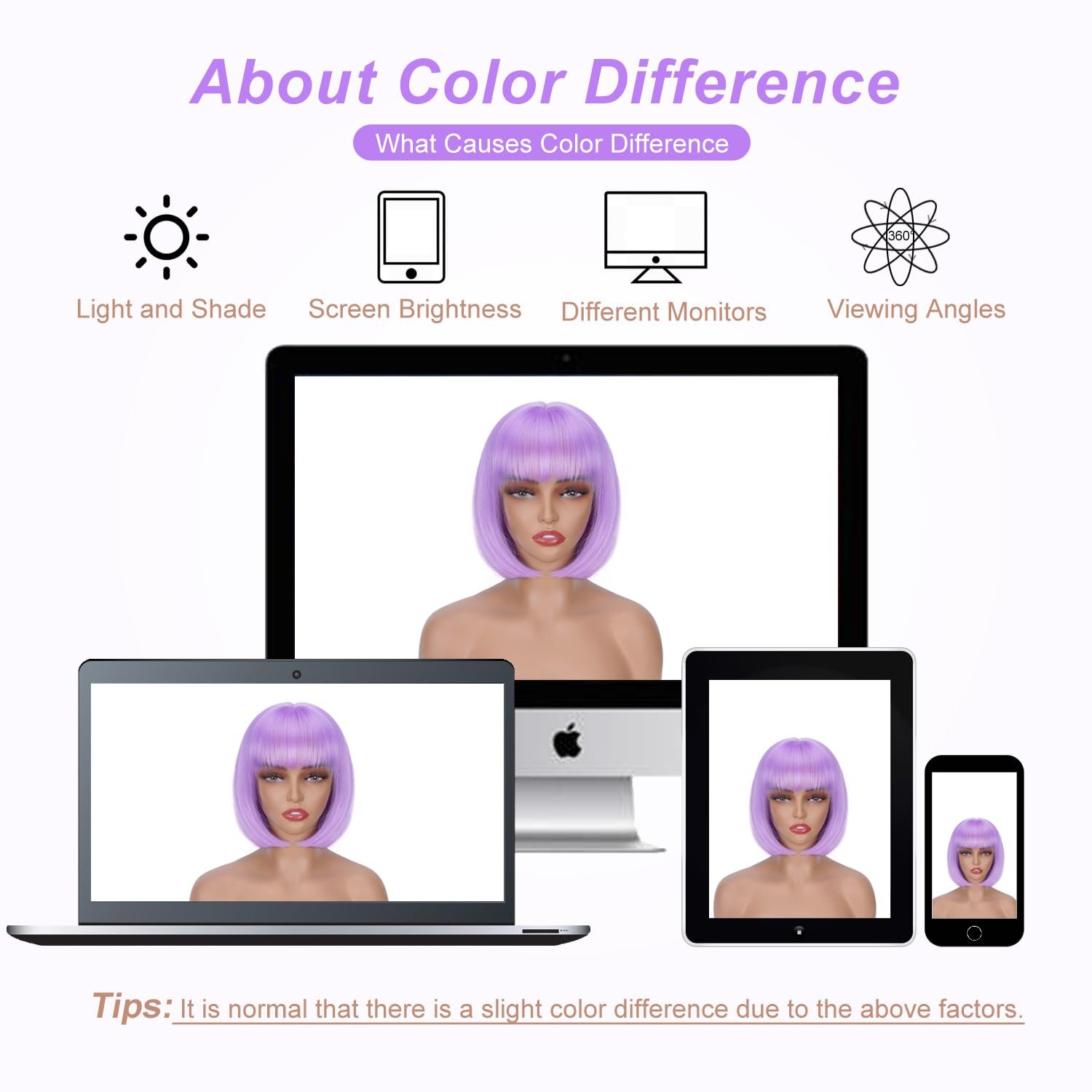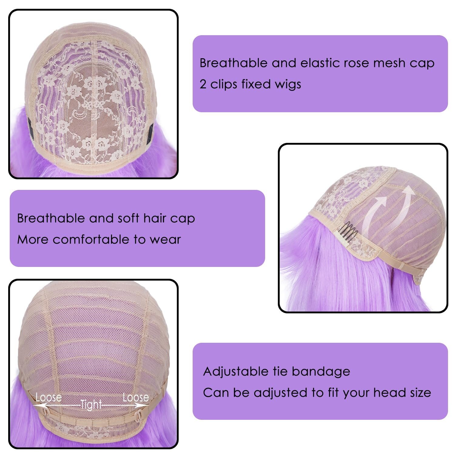 【Tips】: Purple wig will shed slightly especially when you wear for the first time, which is normal. Colors may vary slightly depending on your personal computer or cellphone monitor settings.
