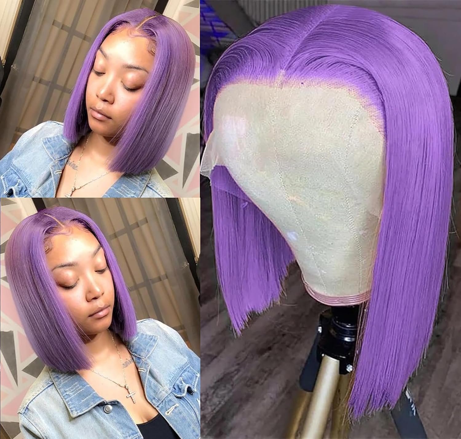 Hair Color: #Purple (Color can be dyed and bleached)Hair Density: 150% Density Lace Front Wig – Full and ThickHair Material:100% Unprocessed Brazilian Virgin Human HairLace Color: Handmade 13x4x1 T Part Swiss Lace in Medium Brown ColorAny Occasion: The Bob Wig is Suitable for Various Occasions, Such as Parties, Christmas Day, Birthdays, Travel, Celebrations, Weddings, Graduations, and Daily Life.
