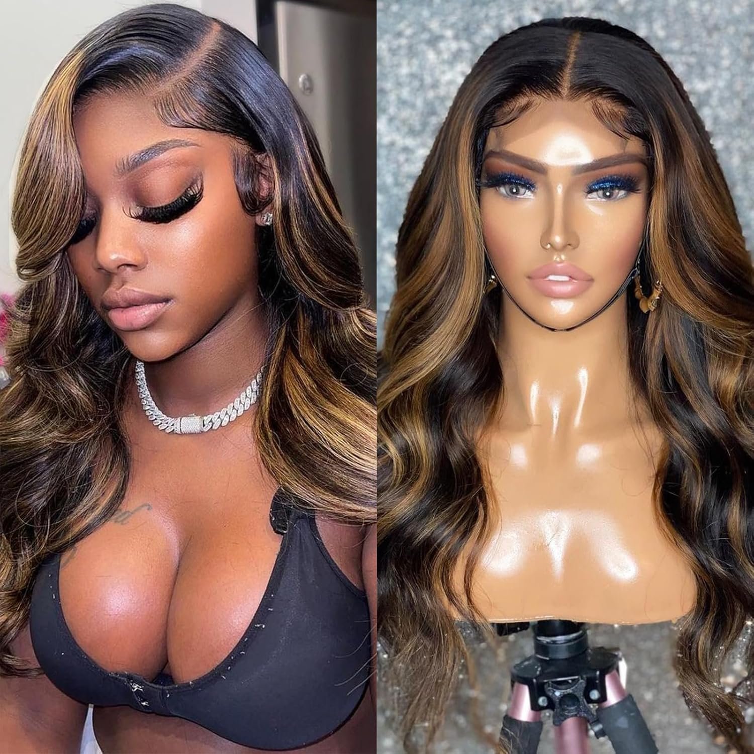 Frontal Wigs Human Hair Highlight Wig Human Hair Quality: Sofeel Body Wave Lace Front Wigs Human Hair; True To Length Totally Stretched; Full Volume Minimum To None Shedding; No Tangle; Bouncy Soft Hold Curls Not Nappy; Can Be Restyled