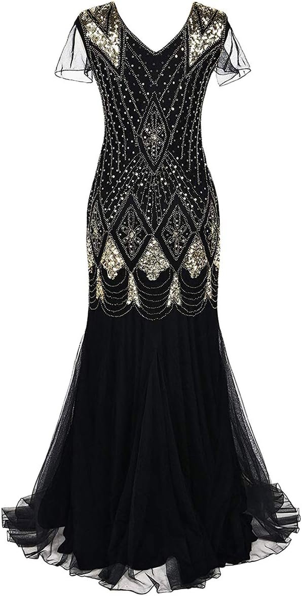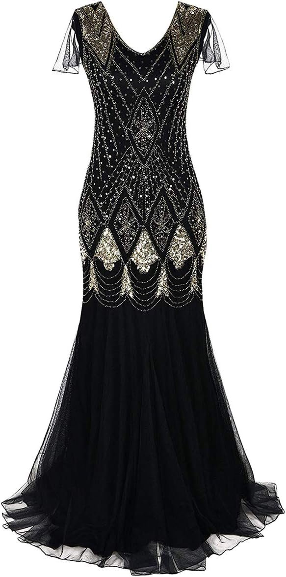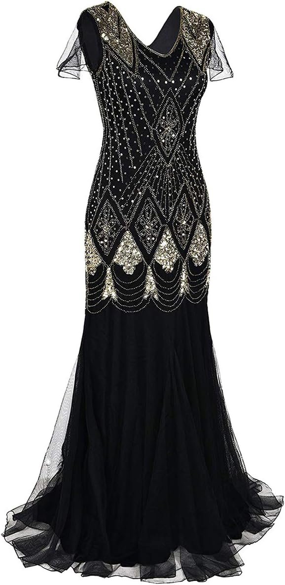 ♣ Dress Style: Vintage 1920s Flapper Sequins Dress, Floor Length Maxi Ball Gown Dresses, Cocktail Evening Nightclub Dancewear
