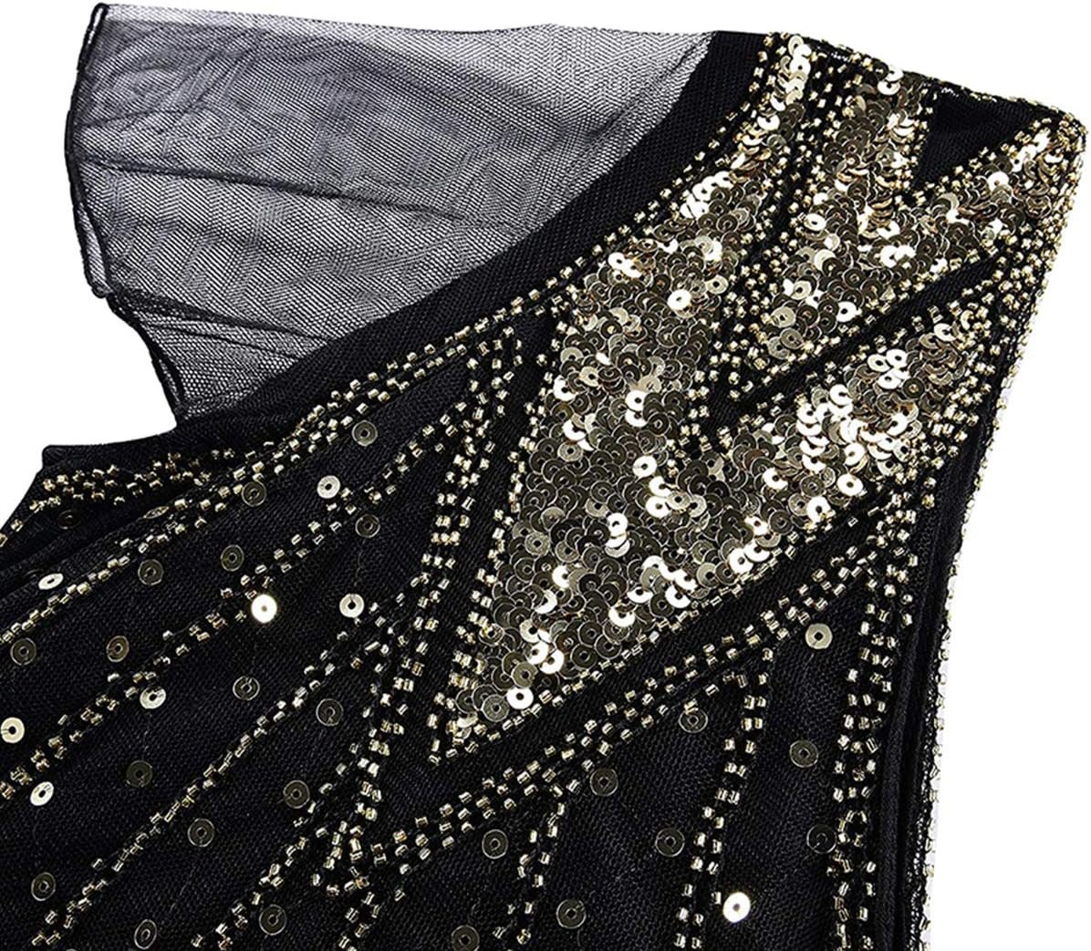 ♣ Features: Glitter Sequins, Flapper, Beads, Hidden Back Zipper, Mesh Sleeves, Mermaid Hem
