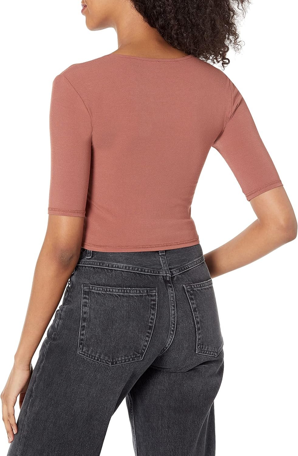 The Chasing Waterfalls is a ribbed crop top. It has elbow length sleeves and a cinched front.