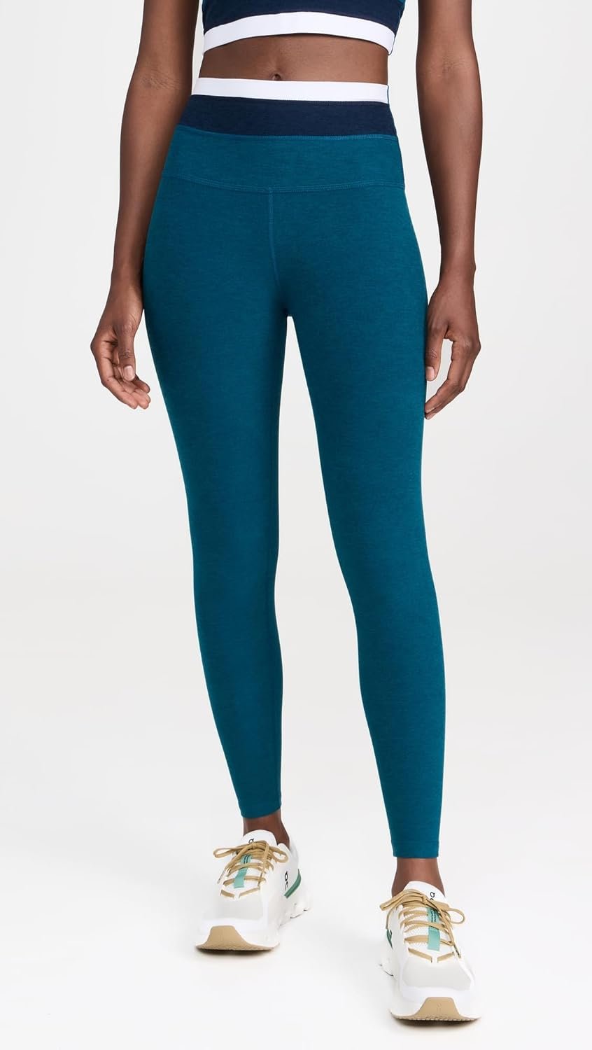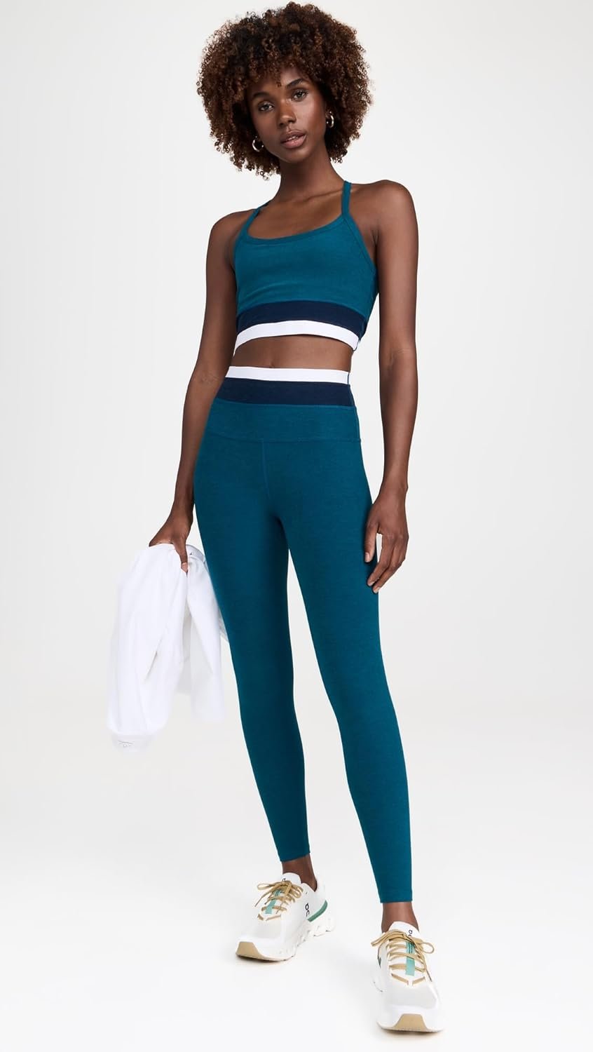 A feast for the eyes, play with bold color blocks. Experience ultimate comfort and style wearing the Beyond Yoga Spacedye Horizon Color-Block Midi Legging. The high-rise, pull-on design with an elasticized waistband sits naturally, flattering every shape. With trendy horizontal colorblock panels and a midi length, these leggings are wear-tested for the perfect fit. 87% polyester, 13% elastane. Machine washable. Made in the USA and imported.