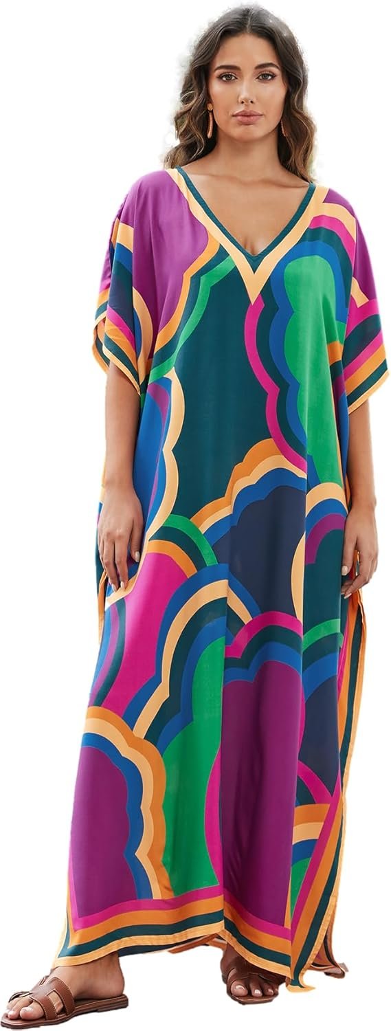 Brand Story: “At RanRui, we believe in empowering women through exquisite beachwear. Our journey began with a passion for blending timeless elegance with modern trends, creating beach cover ups that resonate with every woman’s style. From cloud print caftans to plus size kaftan dresses, each piece is meticulously designed to enhance your beach experience. Our commitment to quality shines through in every batwing sleeve kaftan and vibrant color block caftan we offer. Explore our collection of oversized kaftans and beach caftans, designed to celebrate your unique beauty and confidence. Embrace the essence of RanRui and redefine your beachwear wardrobe with sophistication and comfort.”