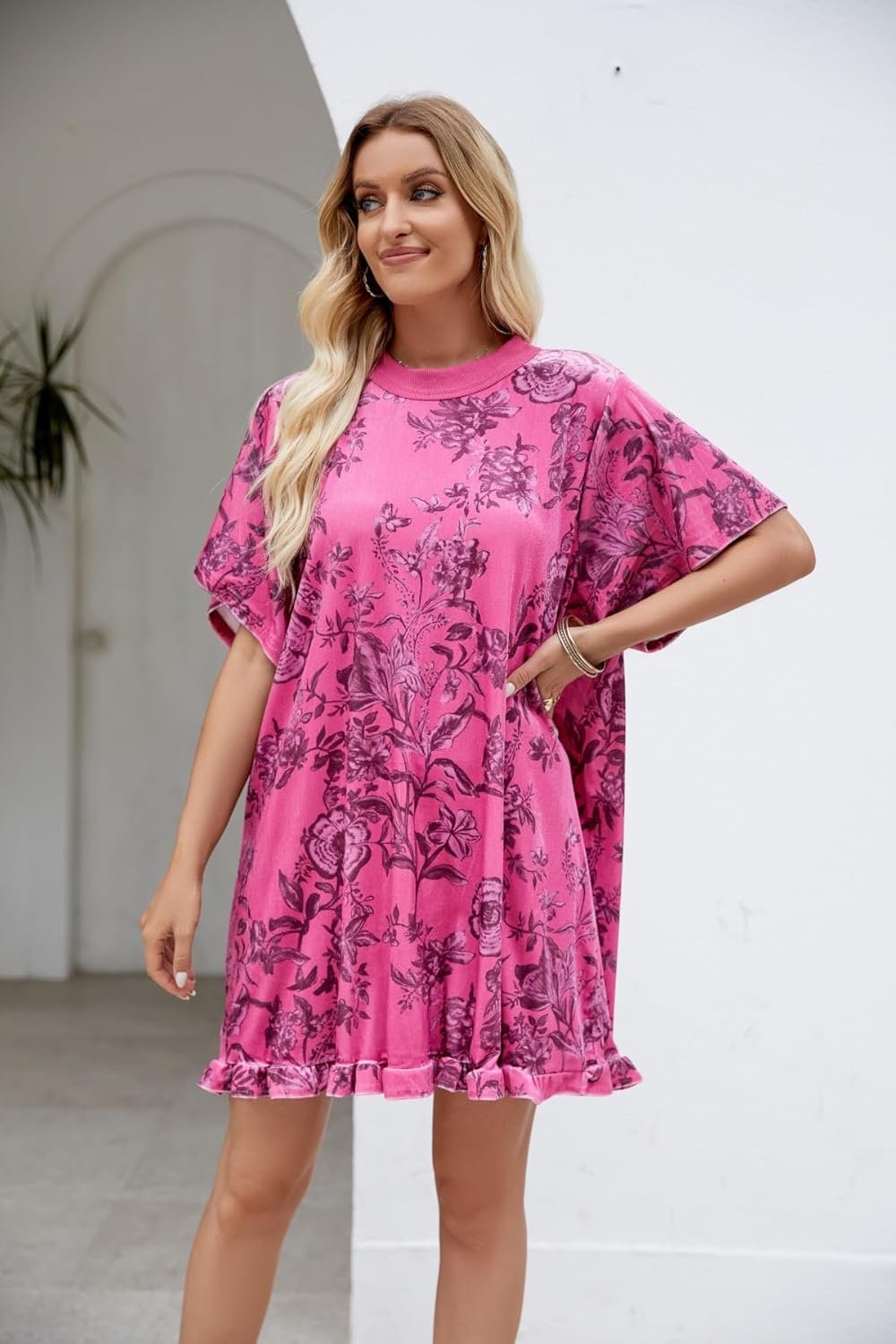 Womens Loose Summer Floral Print Mini Flowy Dress