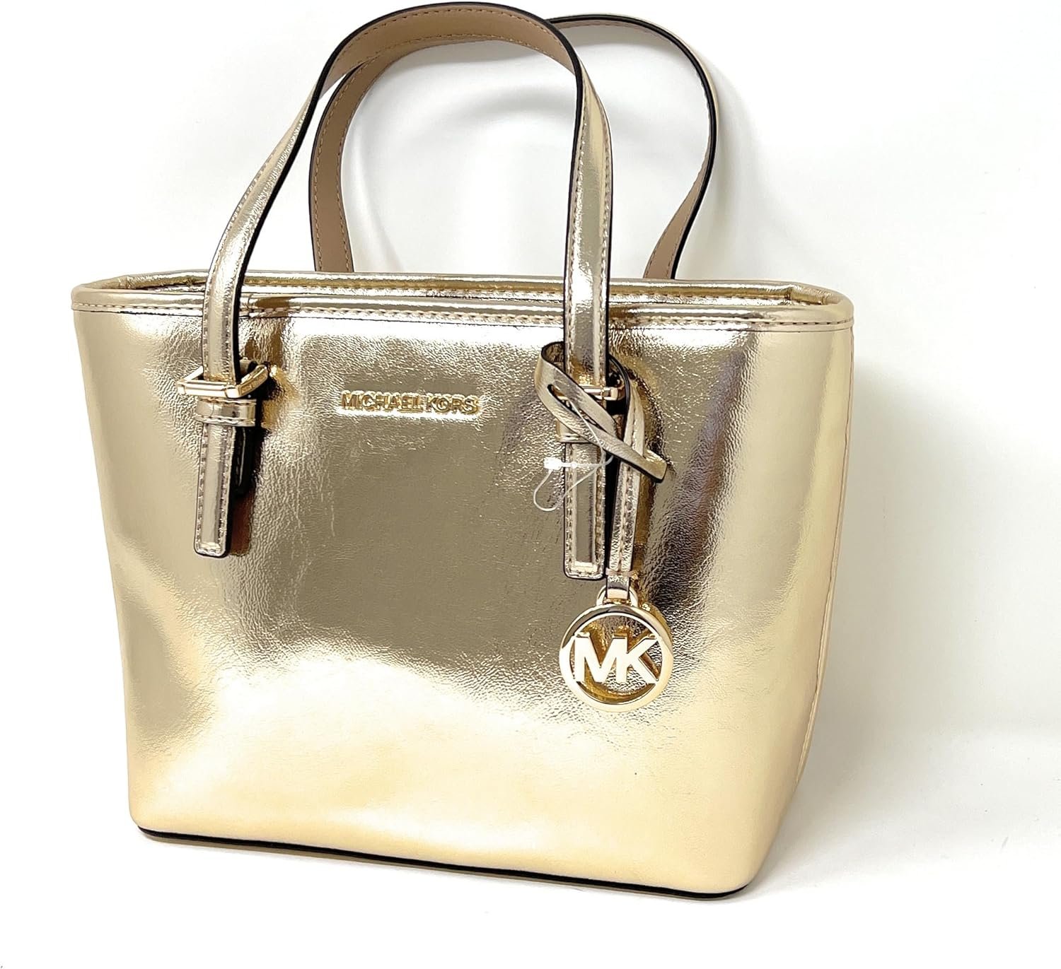 Michael Kors Womens XS Carry All Jet Set Travel Womens Tote Metallic Smooth Leather