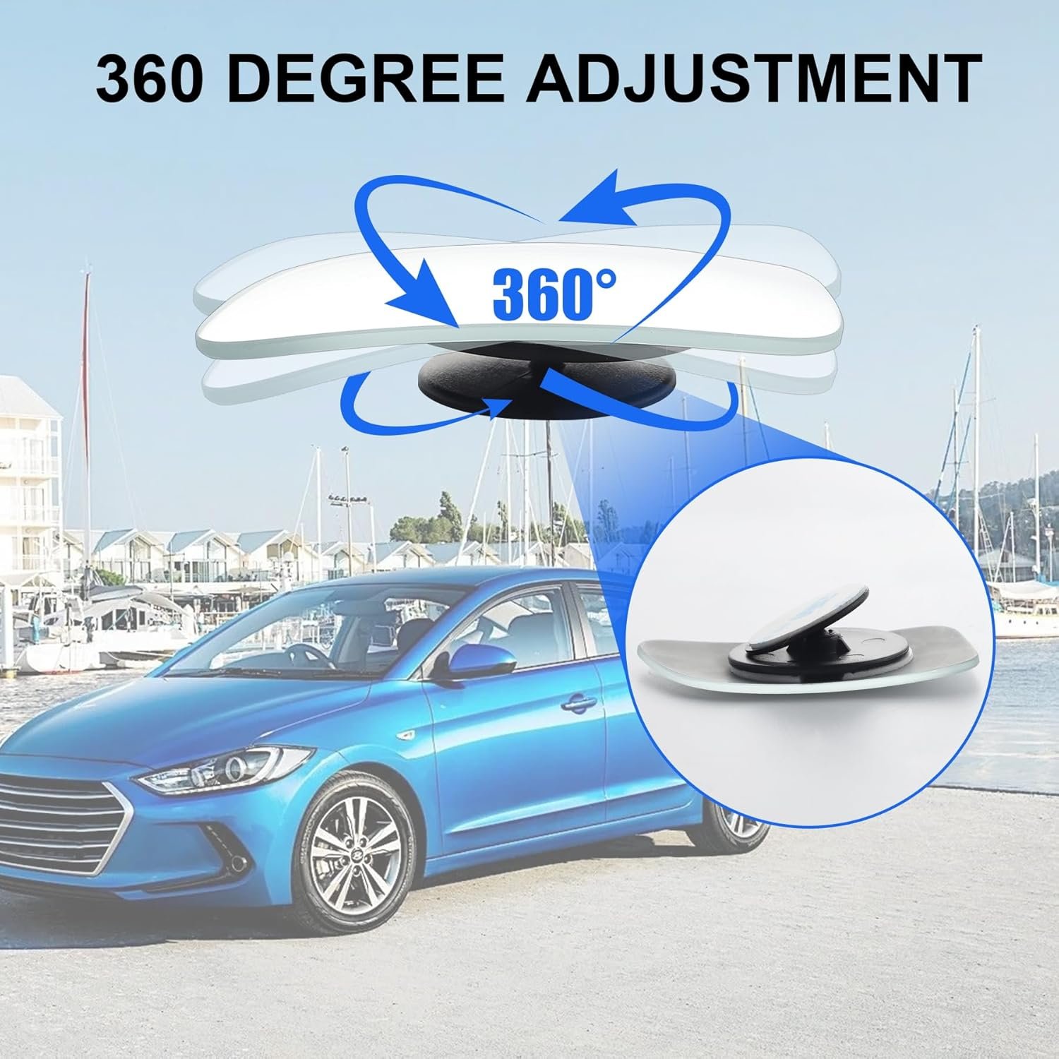 【360 Degree】2 pieces packaged, newest upgrade 360 degree rotate and sway adjustable, maximize your view with wide angle in car. All convex spot mirrors are equipped with tiny adjustable swivel mounting bracket for easy installation.