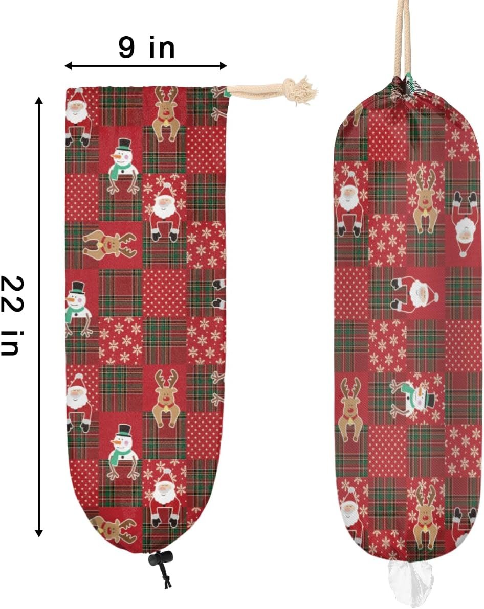 SPECIFICATION Material : Polyester Size : 22 x 9 Inch Package : 1 x Plastic Bag Holder If you have mess with the plastic bags, this plastic grocery bags can help you well organize kitchen about plastic bags. LARGE CAPACITY This large capacity plastic bags dispensers will neatly store plastic shopping bags and keep them handy for reuse. hanging design, so you can hang in any place without taking up too much space. This cute large sized hanging shopping bag holder and dispenser is perfect for plastic grocery bags storage in your kitchen, pantry, cabinet, laundry room, by your cat’s litter box, hang over any doorknob or mount it on any wall with a hook for handy easy access. MULTIPLE PURPOSE Our plastic bag organizer is great for recycling and organizing, which is perfect for bag organizer for kitchen plastic bag storages, such as toring plastic bags, shopping bags, toilet and kitchen rolls at home. It can also use hold vegetables like tomatoes or potatoes for shopping. At the same time, it can also store socks, underwear, small children’s toys, treats, pet treats, diapers, etc. EASY TO USE This plastic bag holders for grocery bags has elastic ropes at the upper and lower ends. The elastic cord at the top allows the plastic bag holder to be hung wherever you need it without taking up space. The elastic cord at the bottom can be adjusted according to your needs to facilitate the extraction of plastic bags. PERFECT DECORATION GIFT This garbage bag dispenser has adorable designs and patterns, fit any fashionable indoor style. A perfect choice for home decoration, perfect for making housewarming Easter Halloween Thanksgiving Christmas birthday gifts for family and friends.
