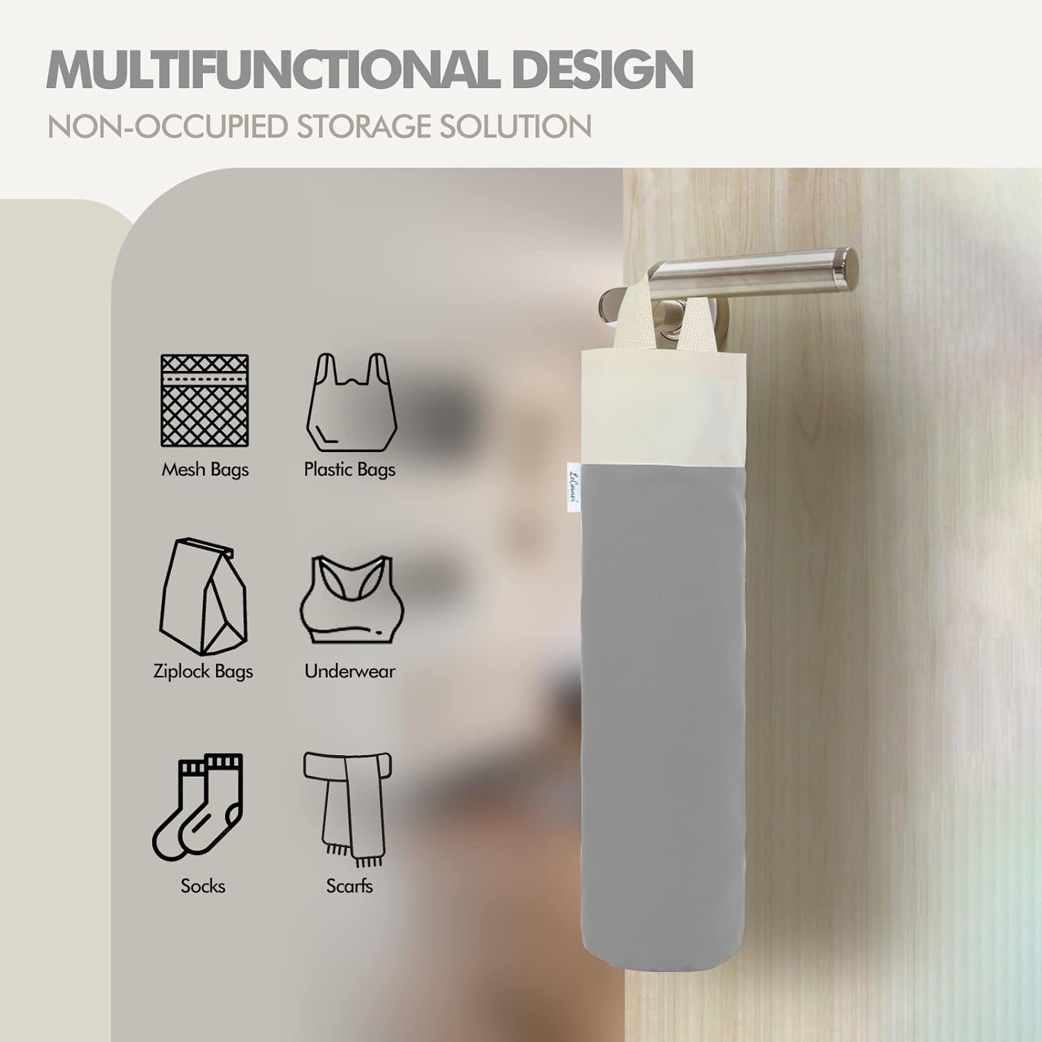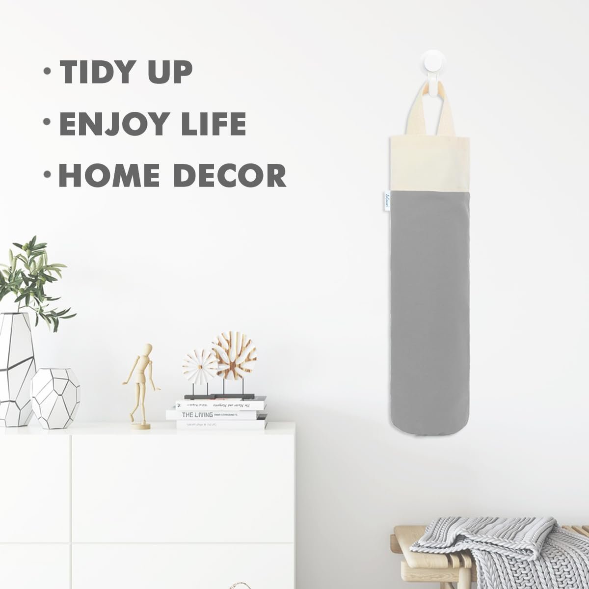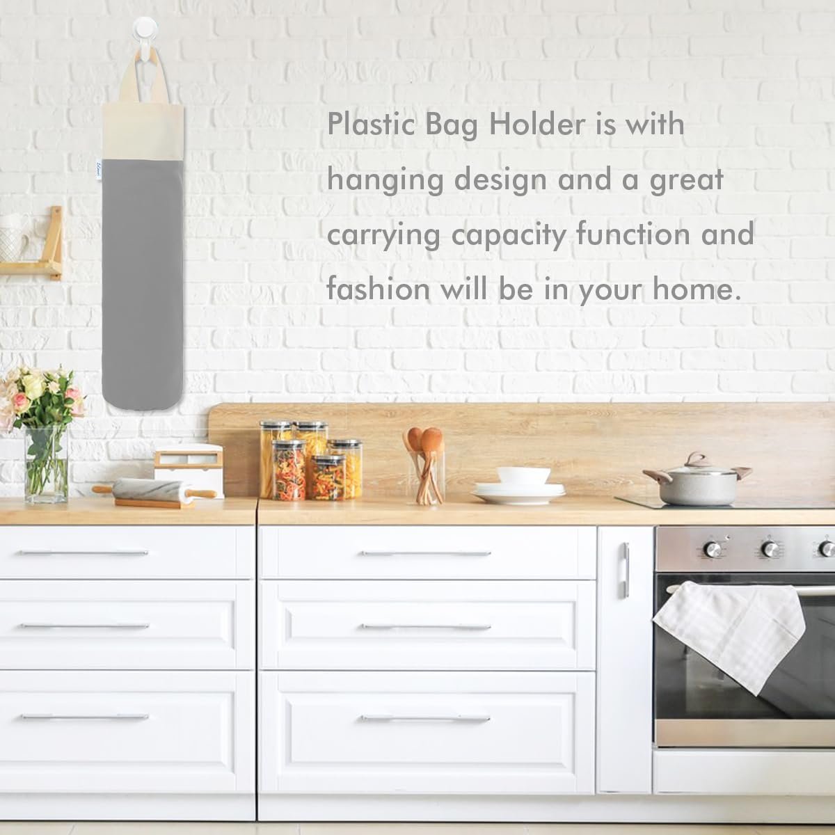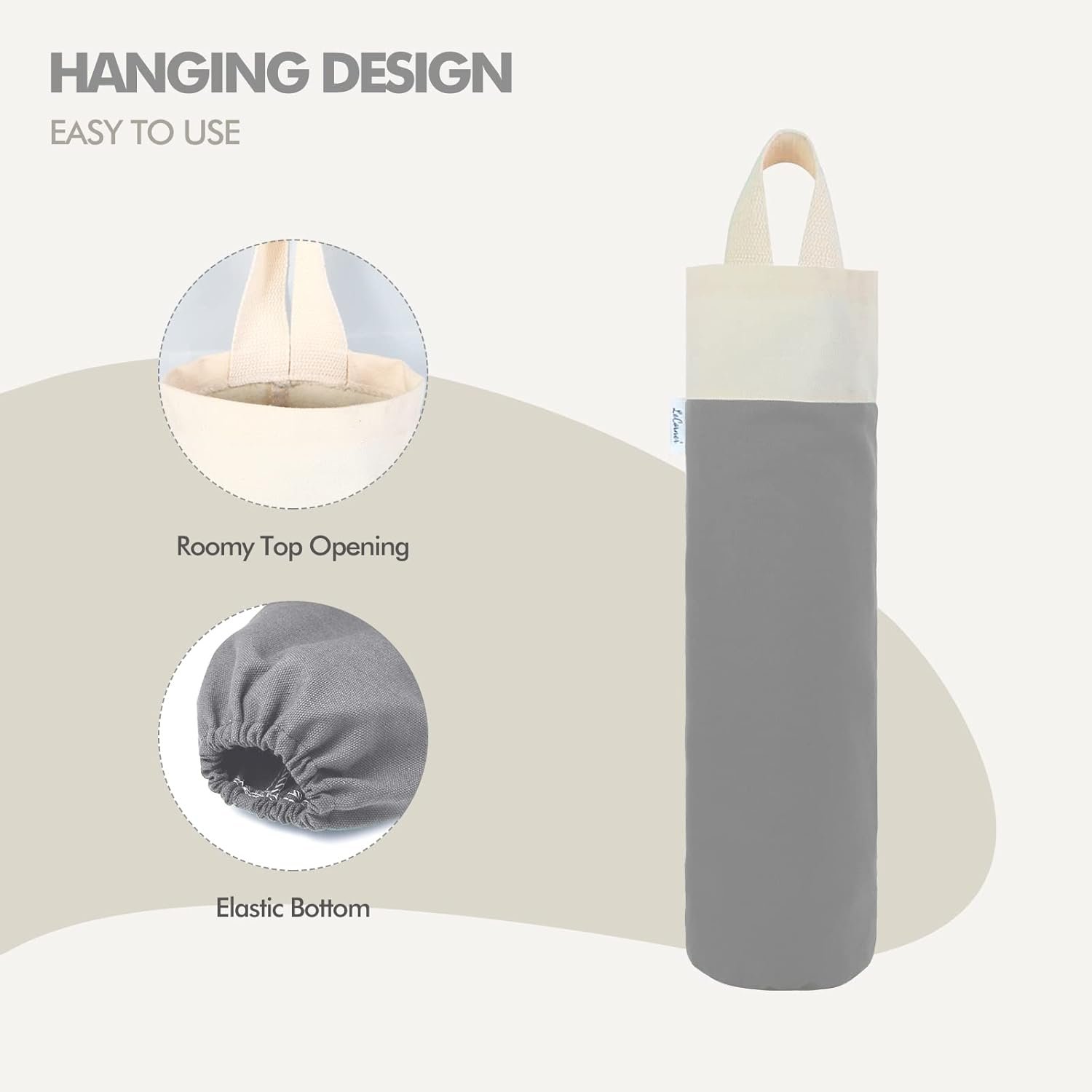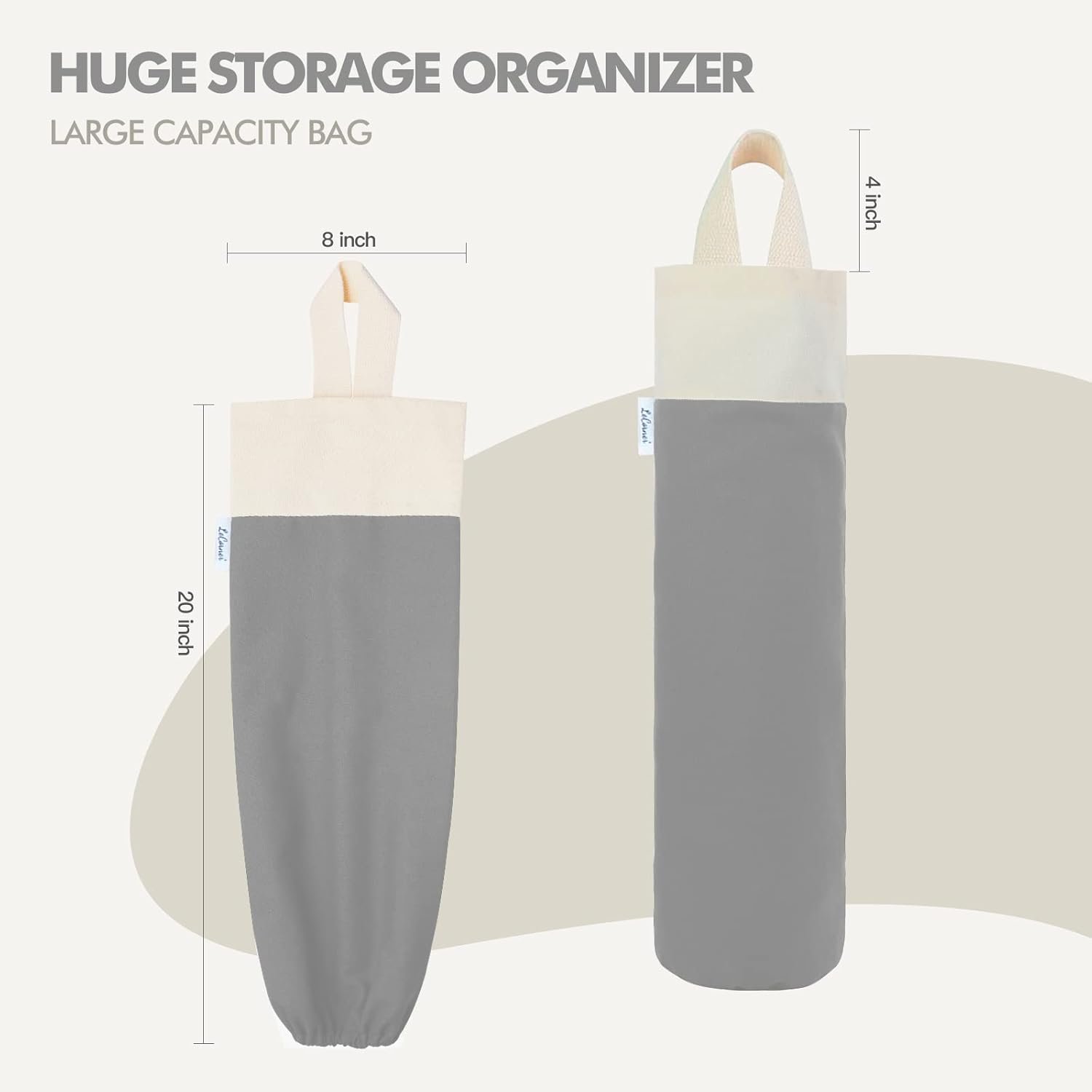 LARGE CAPACITY AND MULTIFUNCTIONAL – Our cotton bag holder for plastic bags groceries store is design with high-capacity with the dimensions of approx 20 x 8 inch, which can not only hold up about 50+ plastic bags, but also can hold vinyl rolls, wrapping papers,freezer bag, zip lock bag,sock, and more. It is a good shopping bag holder which is ideal for plastic bag holders for grocery bags storage.