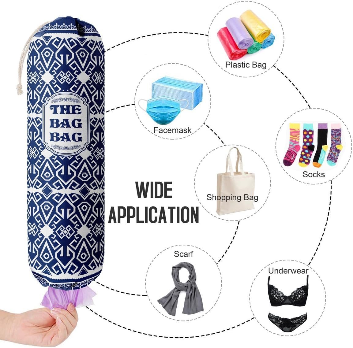 The large capacity of 23 inch X 9 inch it’s convenient to store large size shopping bags, tote bags, rolls, etc. Comes with an elastic open bottom, it gives easy access to the inside bag, preventing pulling several bags at once. The grocery bags holders are machine washable so that you can use these plastic bag holders over and over again. The hanging design take full advantage of vertical space. Ideal for home, kitchen, garages and pet-care areas. Other than this, because of its fashion prints, It can also be used as housewarming gifts, storage bags(sock, underwear, necktie, etc.), packing cubes, pet poop bag headquarters, move accessories bags and other uses, bring much convenience to your life. simple and cute appearance, can coordinate with your home styles, will add a different touch to your space.