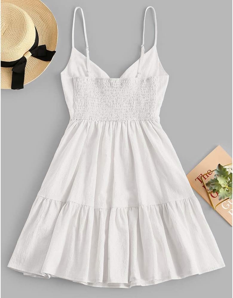 ZAFUL Women’s Casual V Neck Summer Mini Dress Spaghetti Strap A-Line Short Dress