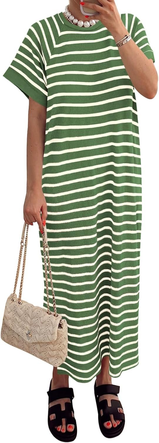 Embrace the warm weather in style with this casual yet chic dress. Featuring a striped pattern, a maxi length, and convenient pockets, this dress offers both comfort and versatility for any summer occasion.