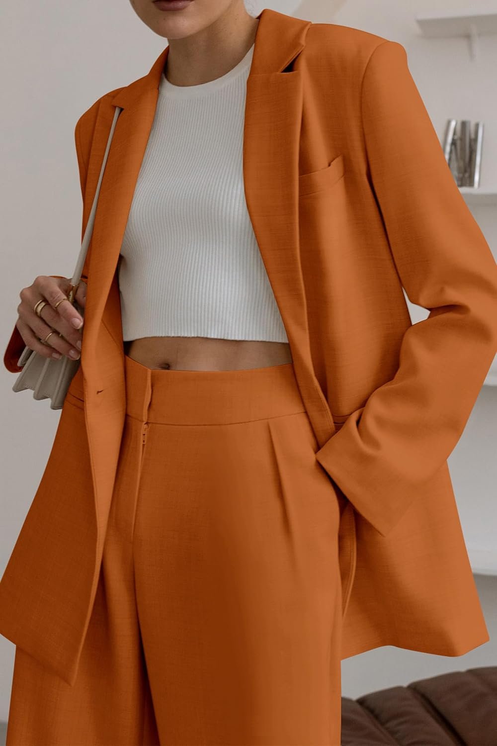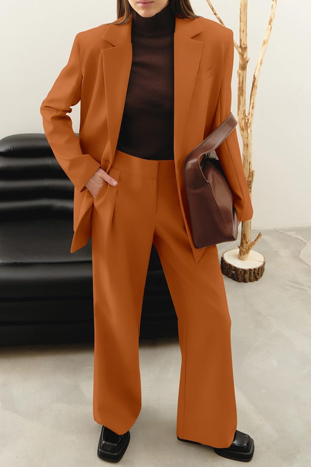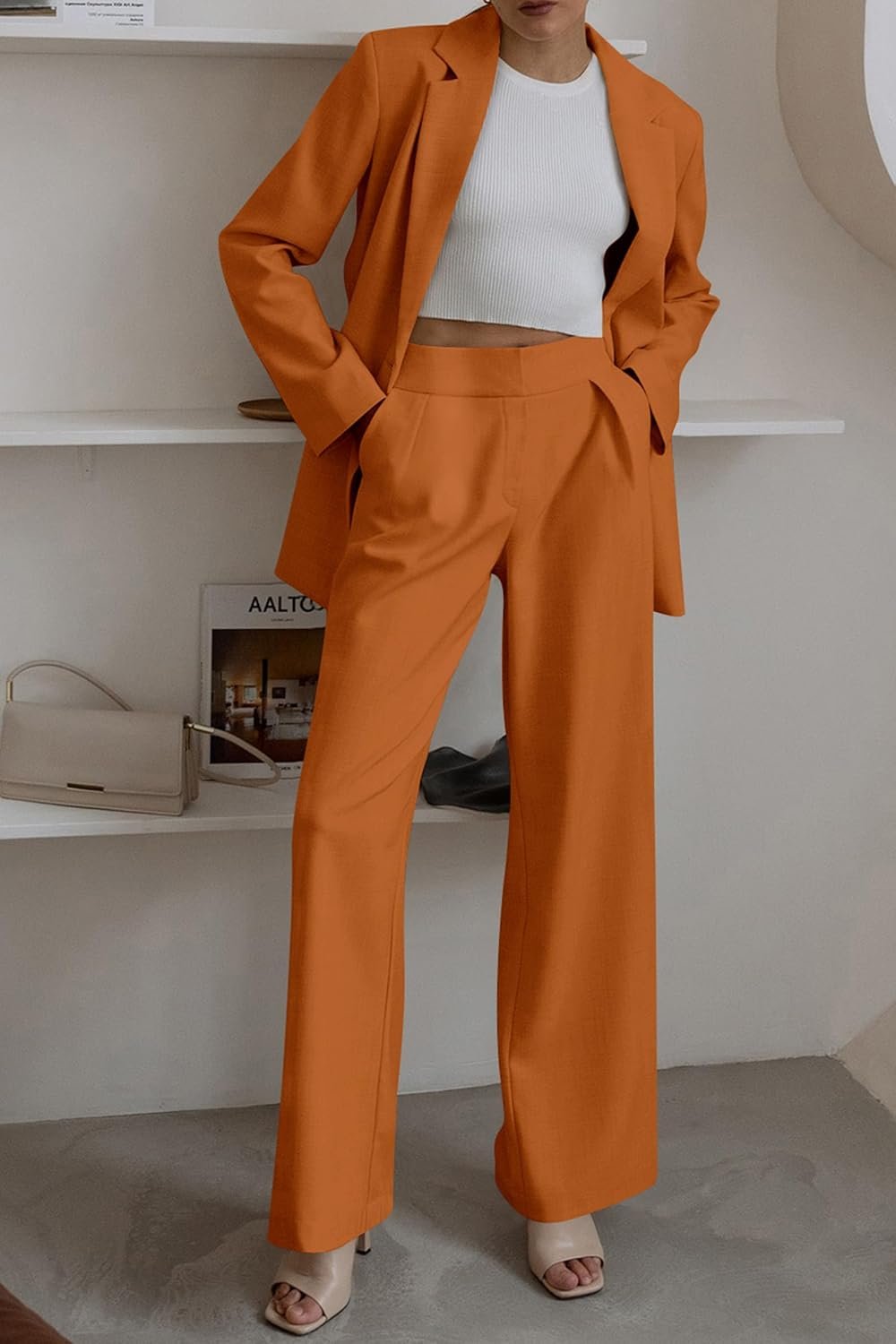 Women Sets 2 Piece Outfits Includes A Loose-Fitting Blazer And Wide Leg Pants, Perfect For A Trendy And Relaxed Look.