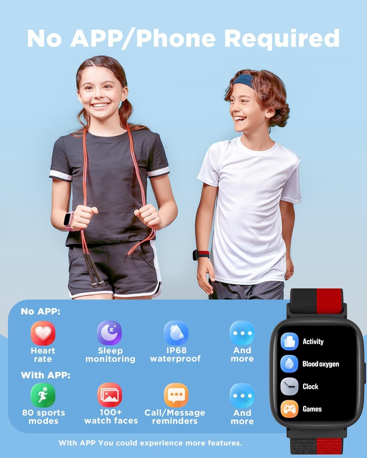 Without/With APP: BIGGERFIVE kids fitness tracker watch can be used seperately without APP and phone. But with APP, you could explore more functions. Compatible with Android 6.0+ and iOS 9.0+ smartphones.