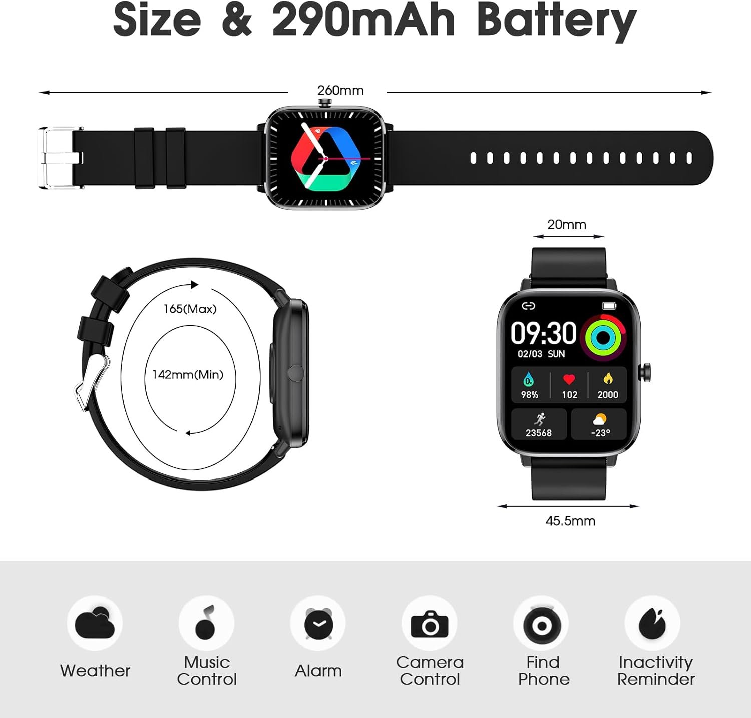 100+ Sports Modes and Multifunctionality: Designed for an active lifestyle, this running watch step tracker watch supports over 100 sports modes, tracking steps and etc. This activity trackers and smartwatches also includes practical daily functions